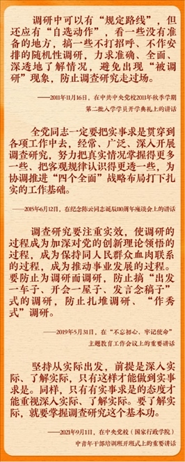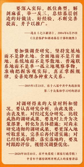 在全黨大興調(diào)查研究之風的今天,讓我們重溫總書記的有關論述,跟著總書記學習調(diào)查研究。