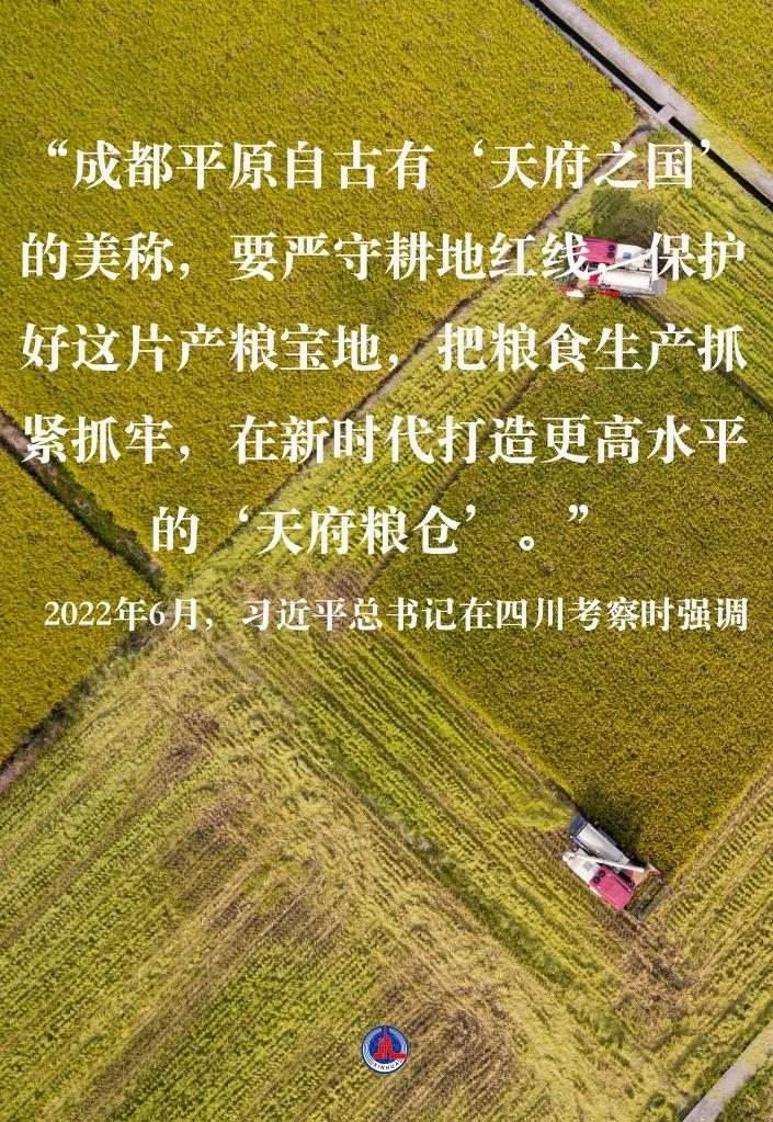 2022年6月,習(xí)近平總書記在四川考察時(shí)強(qiáng)調(diào),“成都平原自古有‘天府之國’的美稱,要嚴(yán)守耕地紅線,保護(hù)好這片產(chǎn)糧寶地,把糧食生產(chǎn)抓緊抓牢,在新時(shí)代打造更高水平的‘天府糧倉’”。
