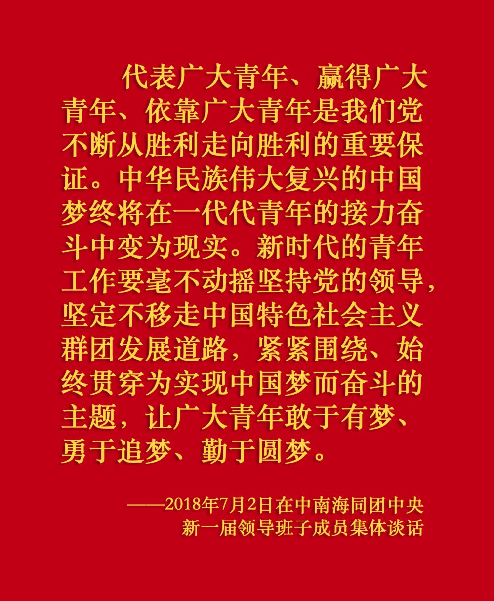 在新的征程上,如何更好把青年團結起來、組織起來、動員起來,為實現(xiàn)第二個百年奮斗目標、實現(xiàn)中華民族偉大復興的中國夢而奮斗,是新時代中國青年運動和青年工作必須回答的重大課題。