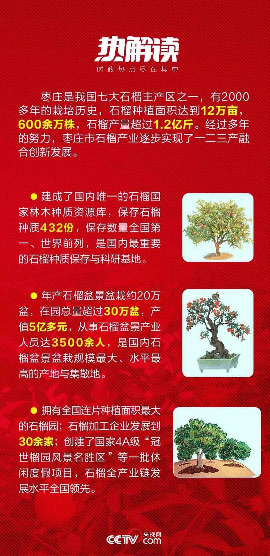 “人們生活水平在提高,優(yōu)質(zhì)特產(chǎn)市場(chǎng)需求在增長(zhǎng),石榴產(chǎn)業(yè)有發(fā)展?jié)摿??!痹跅椙f嶧城區(qū)冠世榴園,總書(shū)記對(duì)于發(fā)展“土特產(chǎn)”的思路一以貫之。