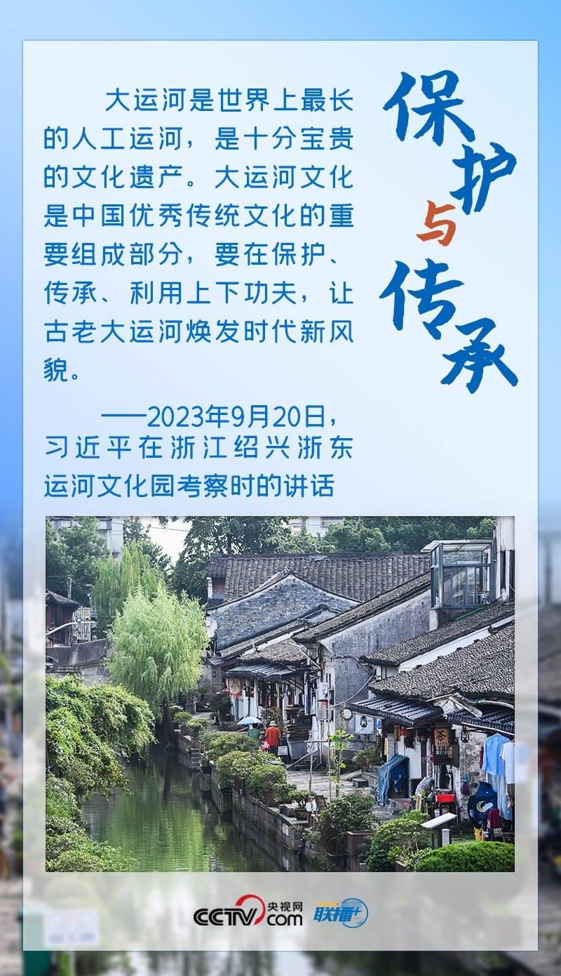 習(xí)近平總書記一直心系大運(yùn)河保護(hù)、傳承與利用工作。2017年,他對(duì)建設(shè)大運(yùn)河文化帶作出重要指示,明確指出“要統(tǒng)籌保護(hù)好、傳承好、利用好”大運(yùn)河。此次考察,總書記再次強(qiáng)調(diào)“要在保護(hù)、傳承、利用上下功夫”。保護(hù)、傳承、利用是辯證統(tǒng)一的,保護(hù)是前提,利用是過(guò)程,傳承發(fā)展是目的,三者相互依存,方能彰顯價(jià)值。文化遺產(chǎn)是先人創(chuàng)造并遺留下來(lái)的寶貴財(cái)富,是一個(gè)國(guó)家和民族文明延續(xù)的內(nèi)在脈絡(luò)與創(chuàng)新創(chuàng)造的動(dòng)力源泉。在保護(hù)的基礎(chǔ)上研究利用好這些人類文明的瑰寶,才能更好做到傳承發(fā)展。