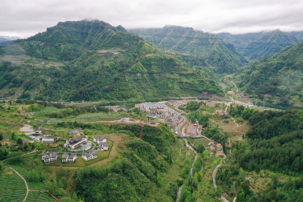這是重慶市石柱縣中益鄉(xiāng)華溪村景觀(2022年4月14日攝,無人機(jī)照片)。目前中益鄉(xiāng)擁有中藥材、特色蔬果等支柱產(chǎn)業(yè)。新華社記者 唐奕 攝