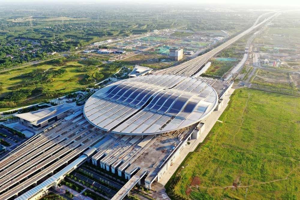 這是雄安站(6月2日攝,無人機(jī)照片)。雄安站位于雄安新區(qū)昝崗片區(qū),是雄安新區(qū)開工建設(shè)的第一個(gè)重大基礎(chǔ)設(shè)施項(xiàng)目,具有標(biāo)志性意義。新華社記者 朱旭東 攝