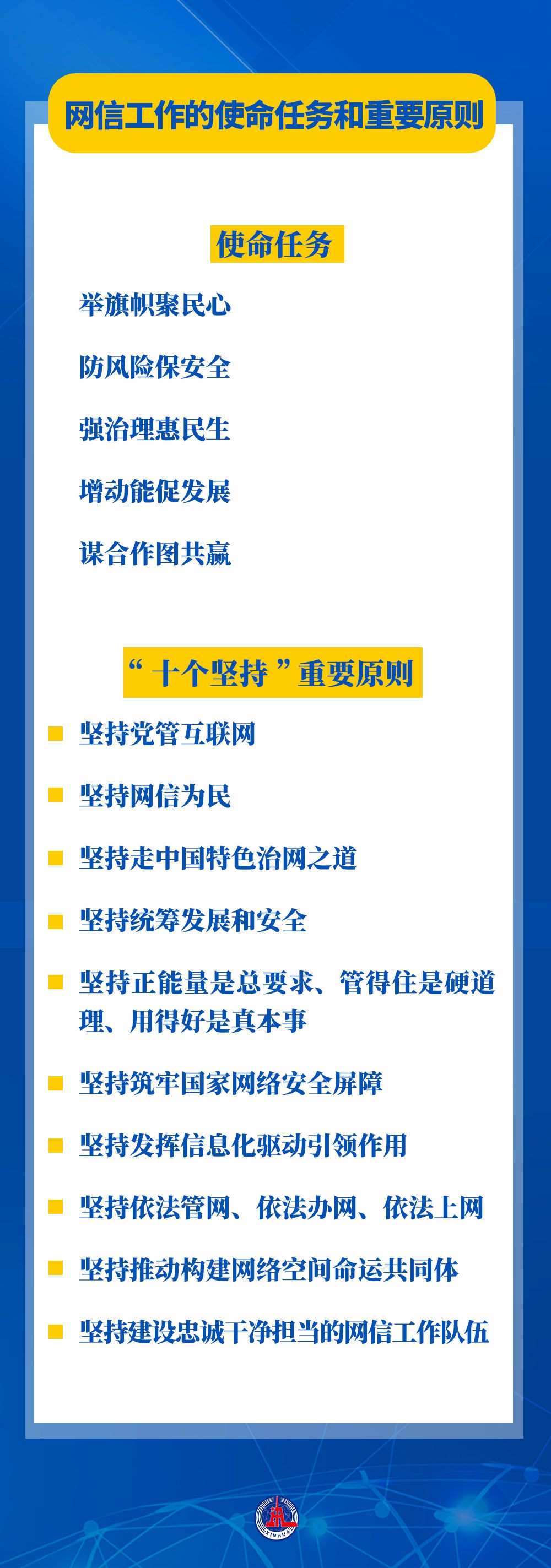 習(xí)近平總書記鮮明提出的網(wǎng)信工作“5個方面、30個字”的使命任務(wù),涵蓋互聯(lián)網(wǎng)內(nèi)容建設(shè)、網(wǎng)絡(luò)安全、網(wǎng)絡(luò)惠民、信息化建設(shè)、國際網(wǎng)絡(luò)空間治理等,“十個堅持”重要原則進(jìn)一步豐富和發(fā)展了習(xí)近平總書記關(guān)于網(wǎng)絡(luò)強國的重要思想,把黨對網(wǎng)信工作的規(guī)律性認(rèn)識提升到全新高度。總書記提出的使命任務(wù)和重要原則,具有很強的政治性、戰(zhàn)略性、指導(dǎo)性,既著眼當(dāng)前,又謀深慮遠(yuǎn),為做好新時代新征程網(wǎng)信工作指明了前進(jìn)方向,為推進(jìn)實現(xiàn)網(wǎng)絡(luò)強國提供了根本遵循。