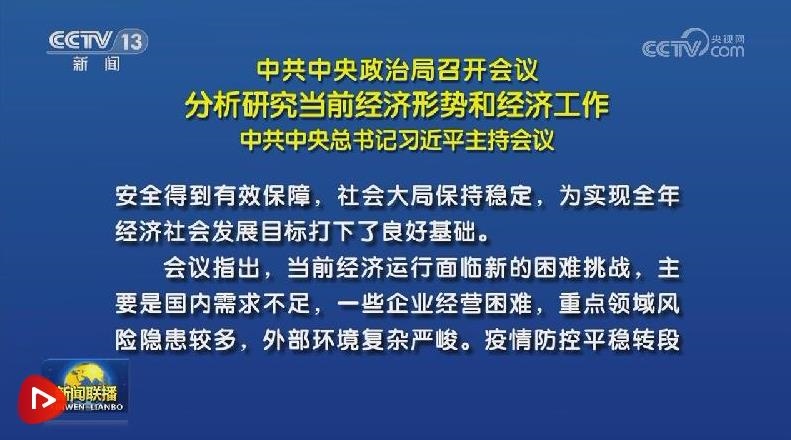 7月24日,中共中央政治局召開會(huì)議,分析研究當(dāng)前經(jīng)濟(jì)形勢(shì),部署下半年經(jīng)濟(jì)工作。習(xí)近平總書記主持會(huì)議。