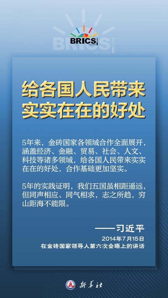 應(yīng)南非共和國(guó)總統(tǒng)拉馬福薩邀請(qǐng),國(guó)家主席習(xí)近平將于8月21日至24日出席在南非約翰內(nèi)斯堡舉行的金磚國(guó)家領(lǐng)導(dǎo)人第十五次會(huì)晤并對(duì)南非進(jìn)行國(guó)事訪問(wèn)。在南非期間,習(xí)近平還將同拉馬福薩共同主持中非領(lǐng)導(dǎo)人對(duì)話會(huì)。過(guò)去十年來(lái),習(xí)近平主席出席了全部十次金磚國(guó)家領(lǐng)導(dǎo)人會(huì)晤并發(fā)表一系列重要講話,為推動(dòng)金磚國(guó)家合作行穩(wěn)致遠(yuǎn)提供中國(guó)智慧、注入強(qiáng)勁動(dòng)力。