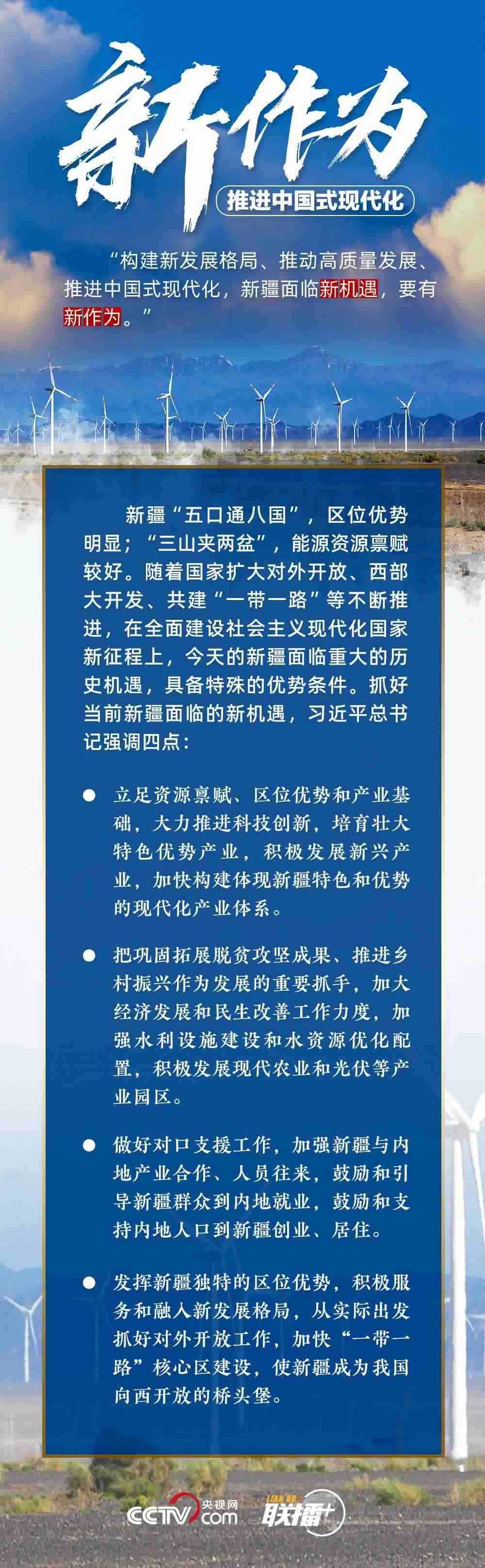 講話中,習近平總書記對做好新疆工作提出一系列重要要求。央視網《聯(lián)播+》特擷取總書記講話中的關鍵要點,與您一起學習。