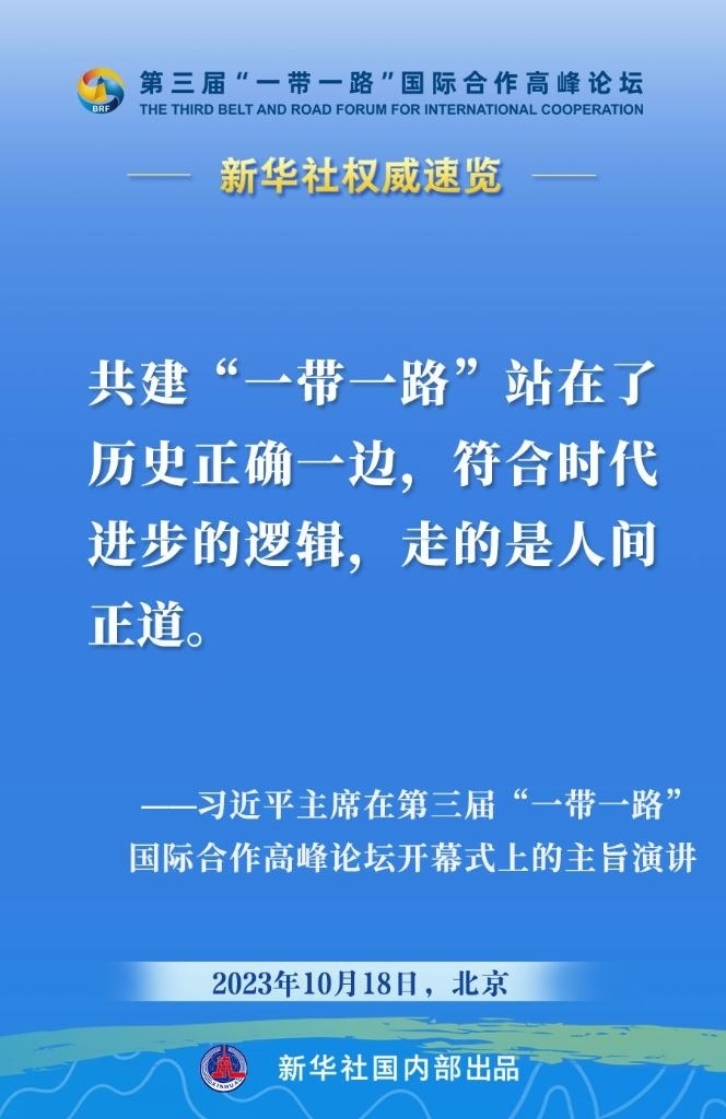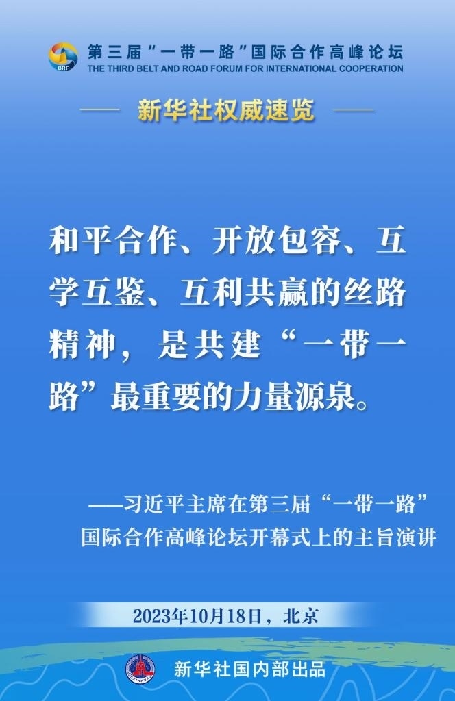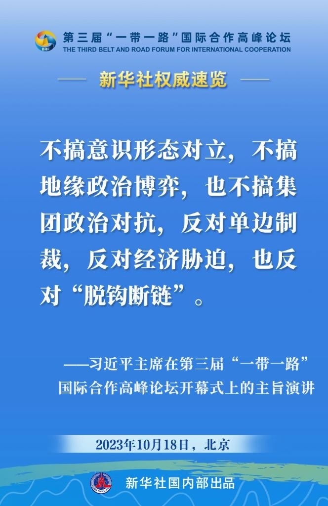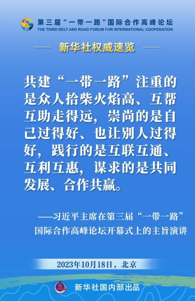 10月18日,國家主席習(xí)近平在第三屆“一帶一路”國際合作高峰論壇開幕式上發(fā)表主旨演講。一起來看金句。