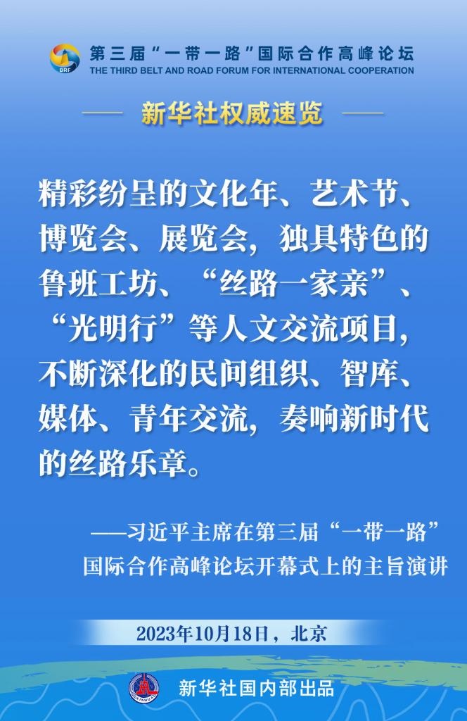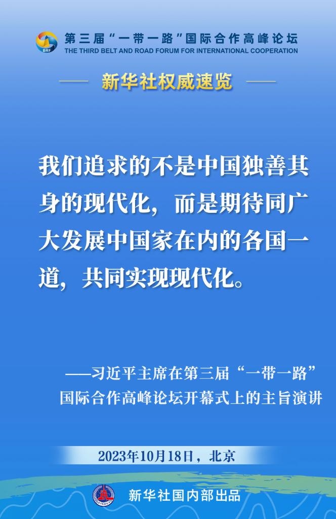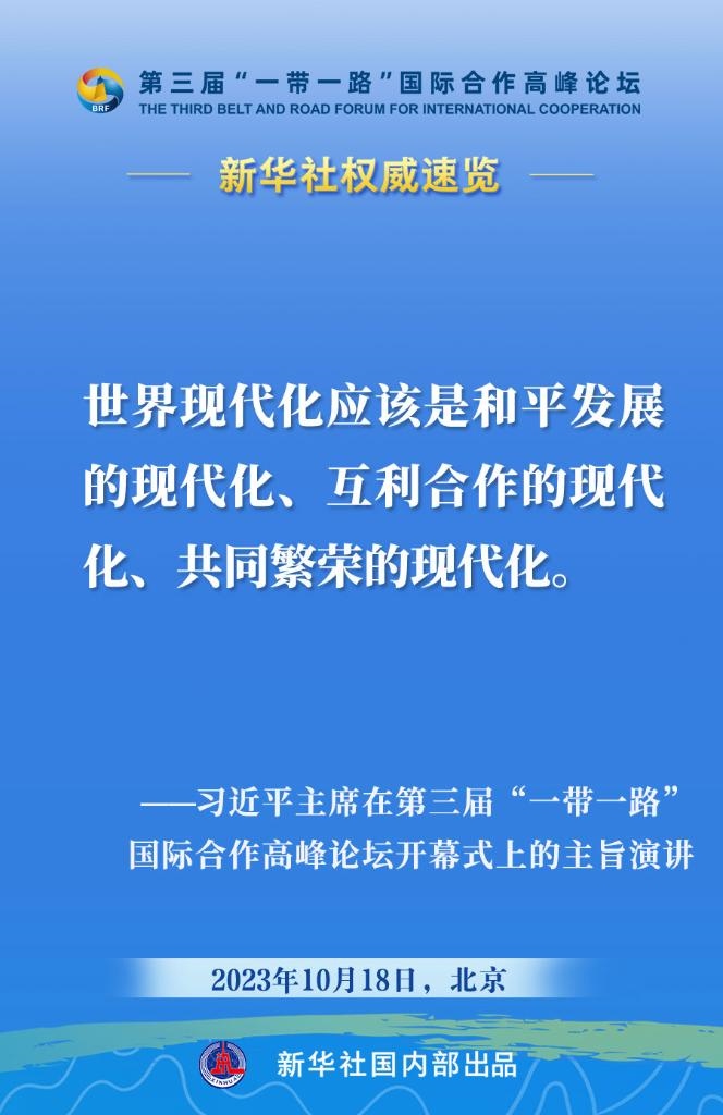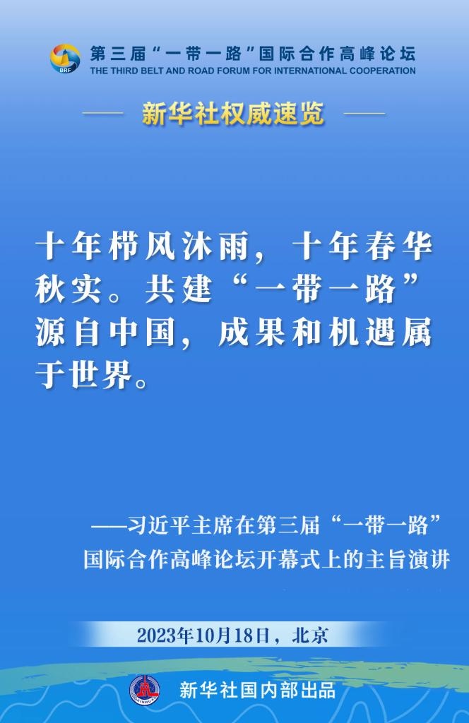 10月18日,國家主席習(xí)近平在第三屆“一帶一路”國際合作高峰論壇開幕式上發(fā)表主旨演講。一起來看金句?! ?/p>