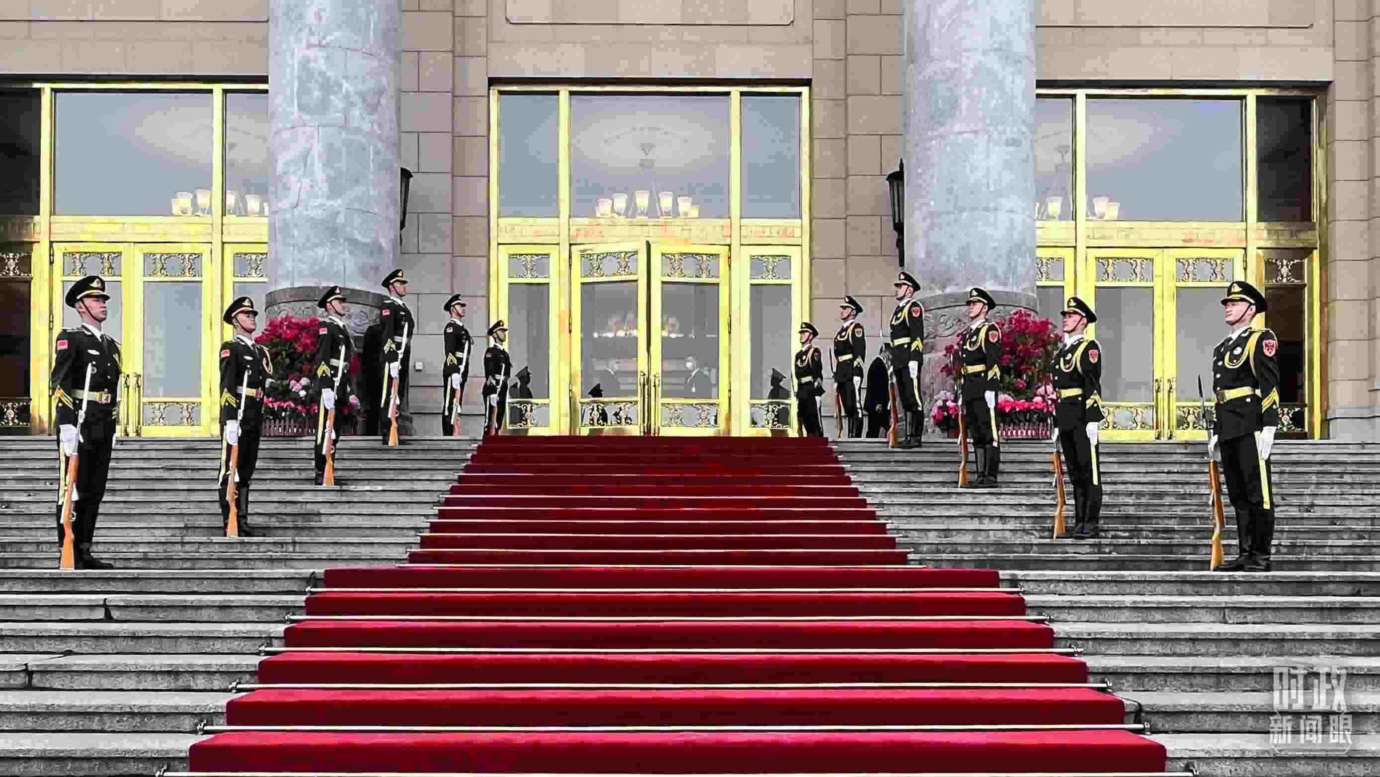 △禮兵列隊(duì)迎接貴賓。(總臺(tái)央視記者張垚拍攝)