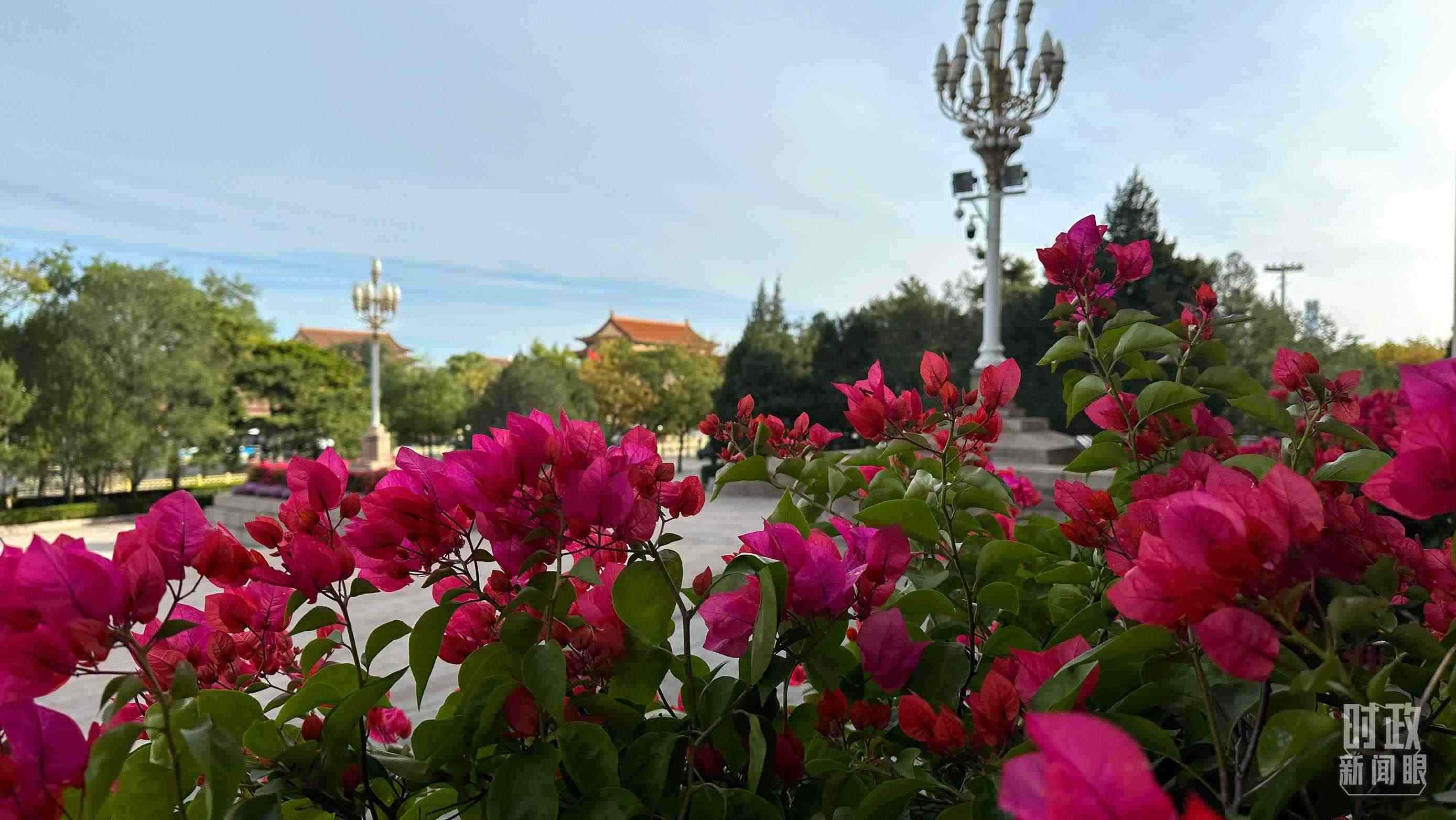 △北京人民大會(huì)堂外花團(tuán)錦簇。(總臺(tái)央視記者趙化拍攝)
