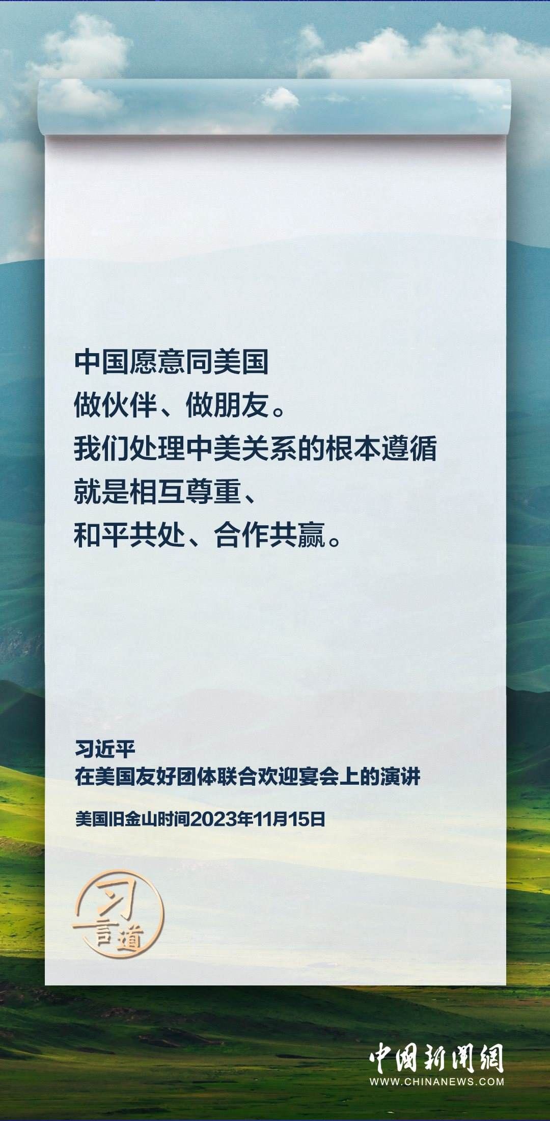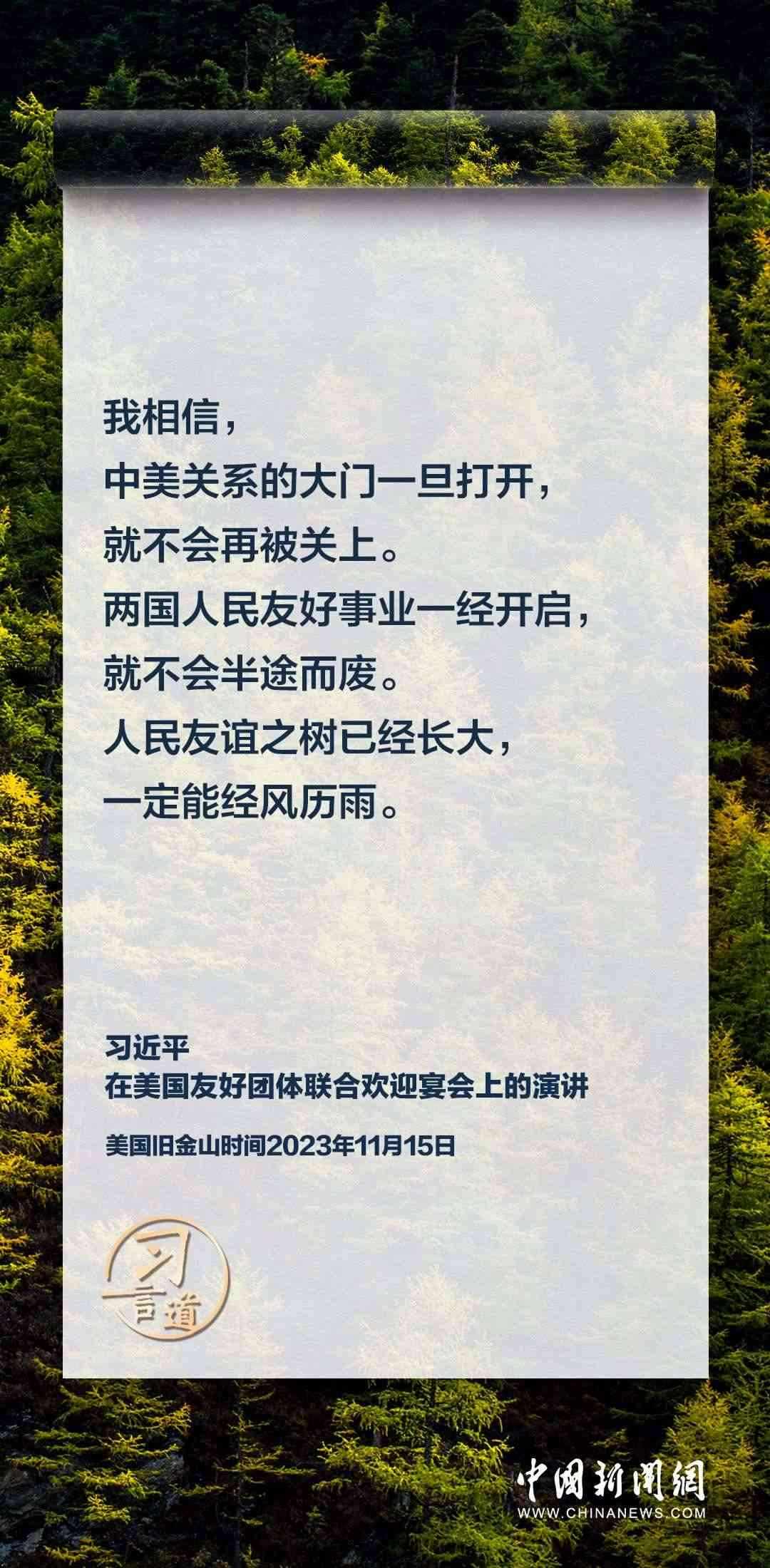 當(dāng)?shù)貢r(shí)間11月15日,中國(guó)國(guó)家主席習(xí)近平在美國(guó)舊金山出席美國(guó)友好團(tuán)體聯(lián)合歡迎宴會(huì)并發(fā)表演講。習(xí)近平在演講中從“我”和“我們”說(shuō)起,提出中國(guó)主張、表明中國(guó)立場(chǎng)、展現(xiàn)大國(guó)擔(dān)當(dāng),話語(yǔ)擲地有聲。