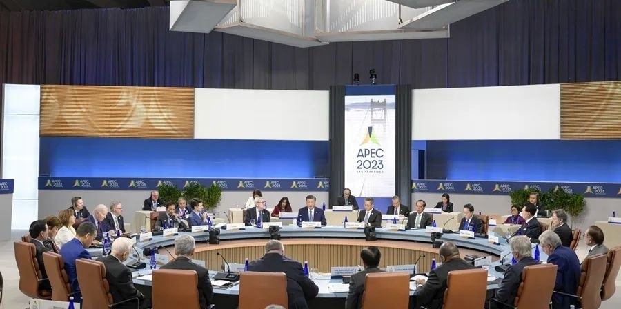 當(dāng)?shù)貢r間11月17日上午,亞太經(jīng)合組織第三十次領(lǐng)導(dǎo)人非正式會議在美國舊金山莫斯科尼中心舉行。國家主席習(xí)近平出席會議并發(fā)表題為《堅守初心 團結(jié)合作 攜手共促亞太高質(zhì)量增長》的重要講話。新華社記者 李學(xué)仁 攝