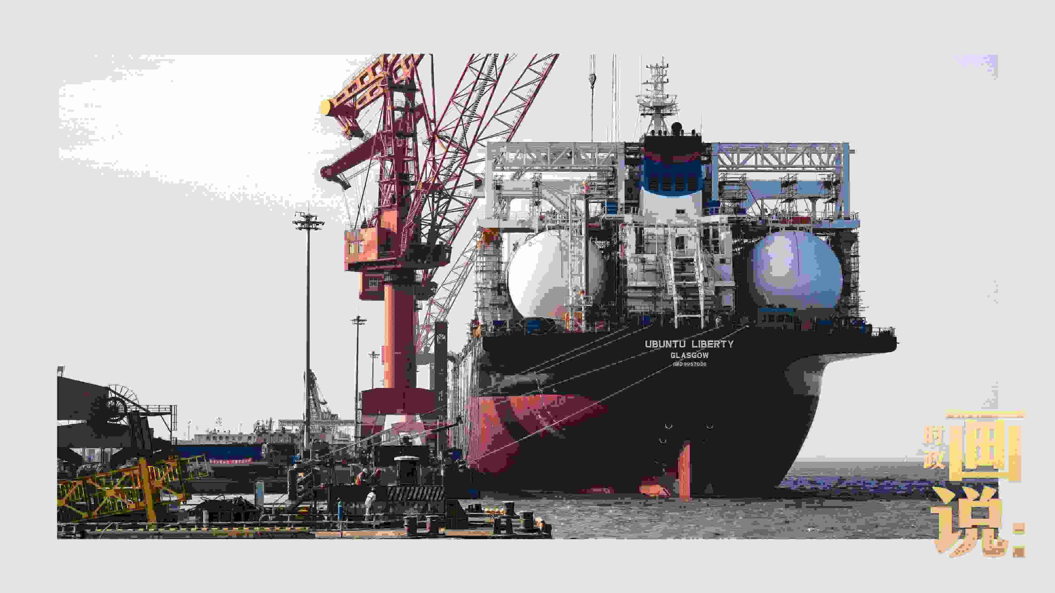 △外高橋船塢碼頭旁,一艘建造中的巨型雙燃料散貨船??吭诓次弧F謻|新區(qū),上海
