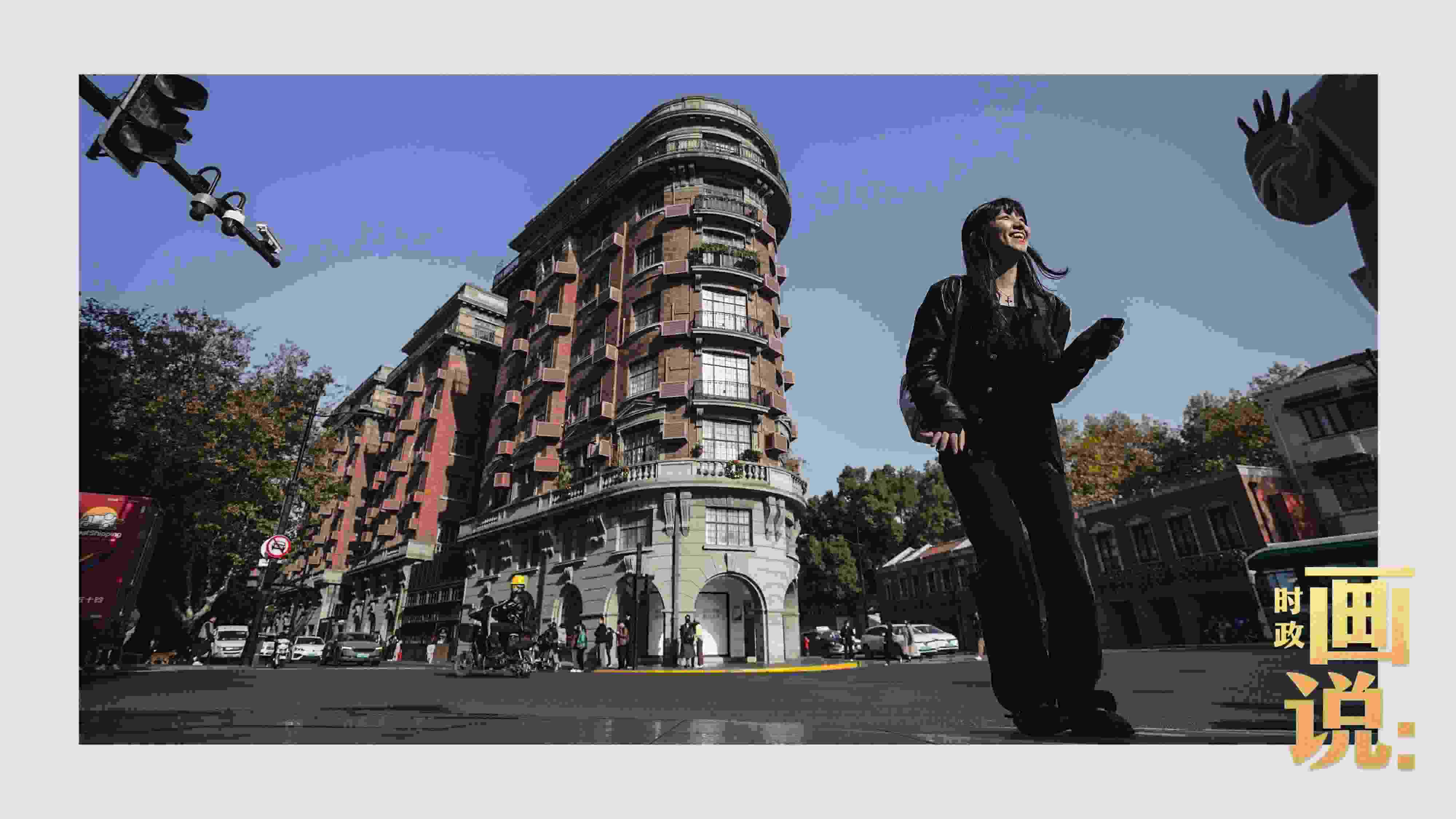 △武康大樓前留影的外籍游客興奮不已。淮海中路,上海。