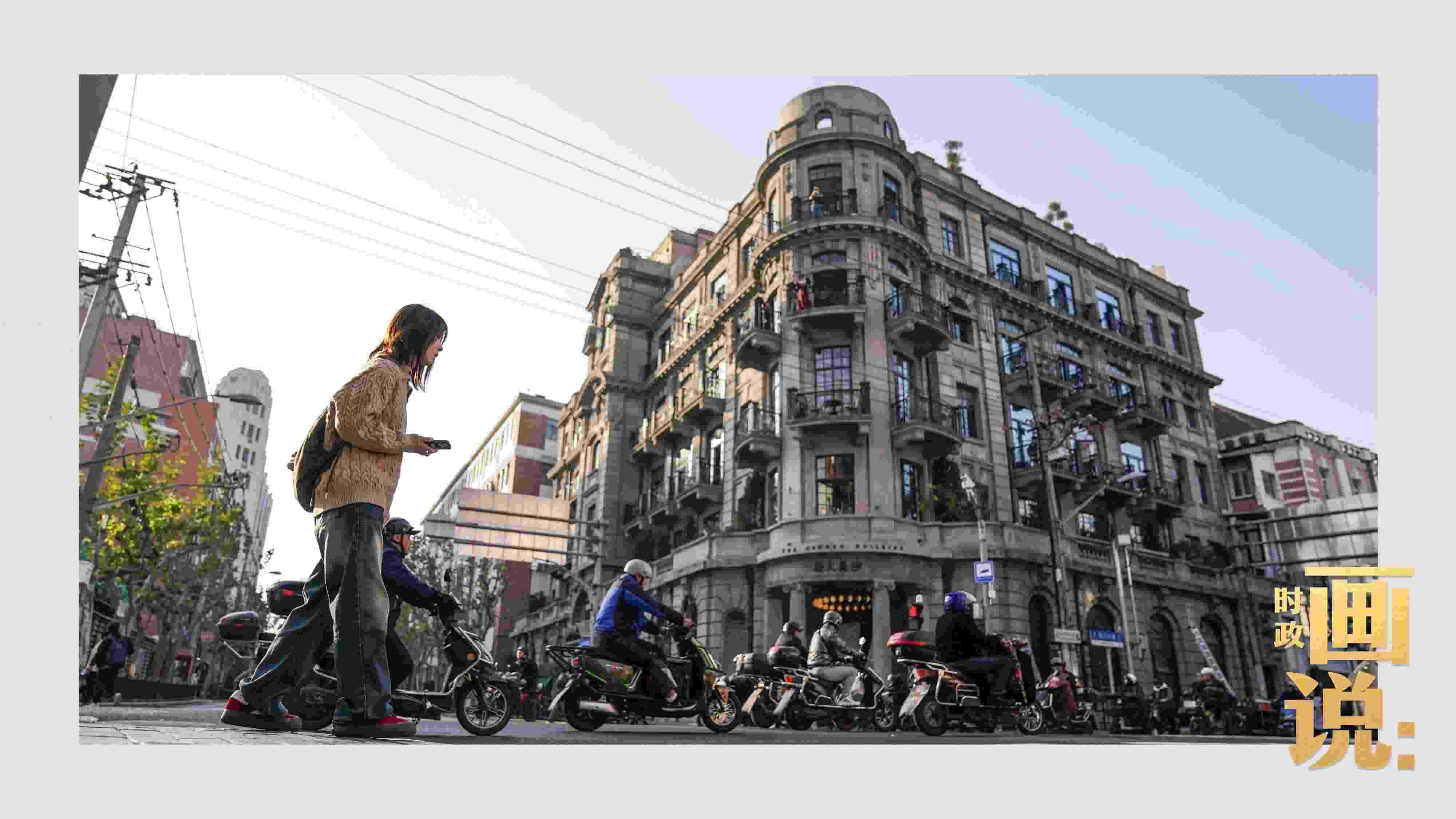 △百年歷史的沙美大樓前車(chē)水馬龍。黃浦區(qū),上海。