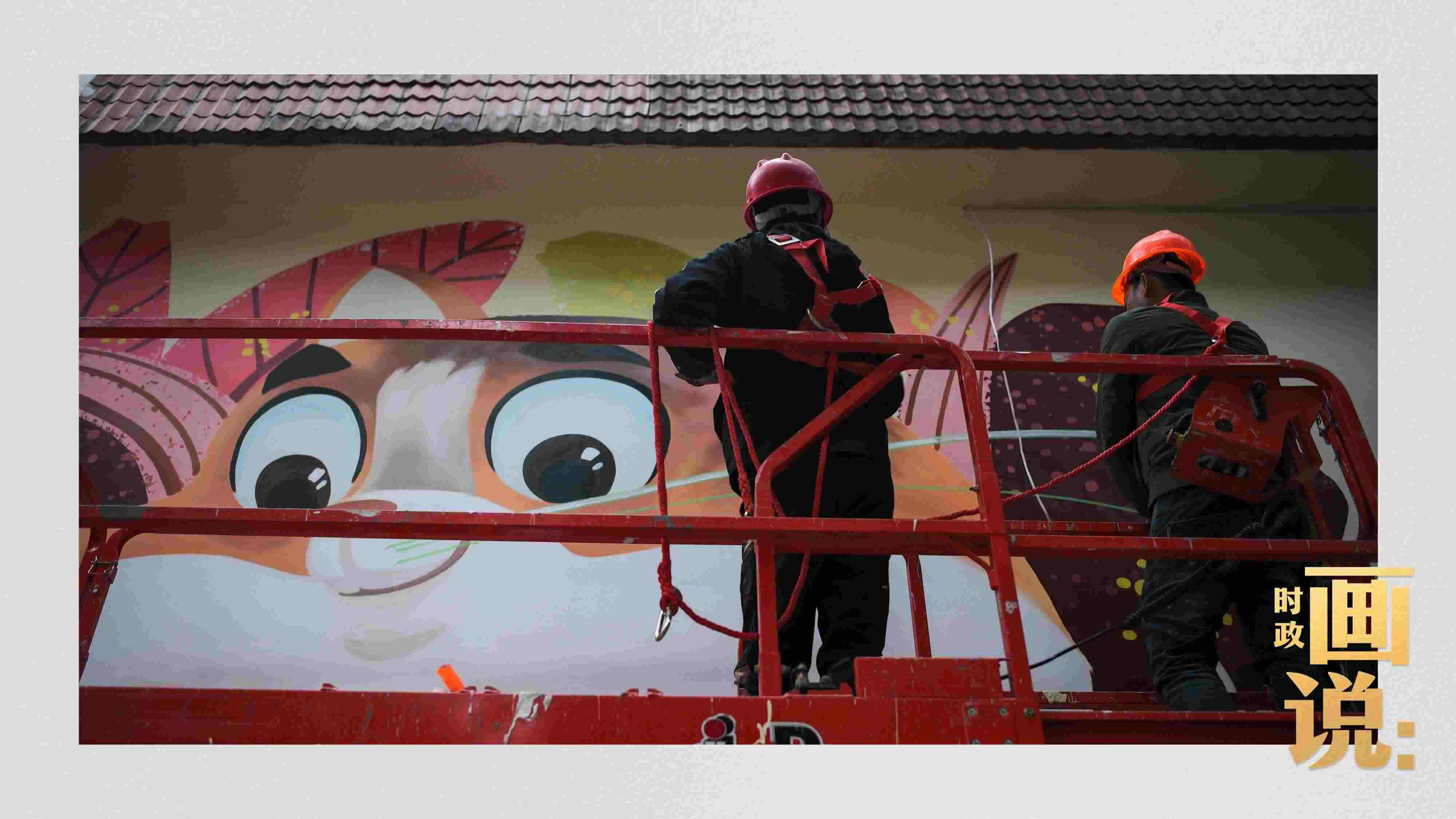△工人在街道外墻上噴繪畫(huà)作,一座城市的藝術(shù)氣息濃縮于街巷的細(xì)節(jié)里。南昌路,上海。