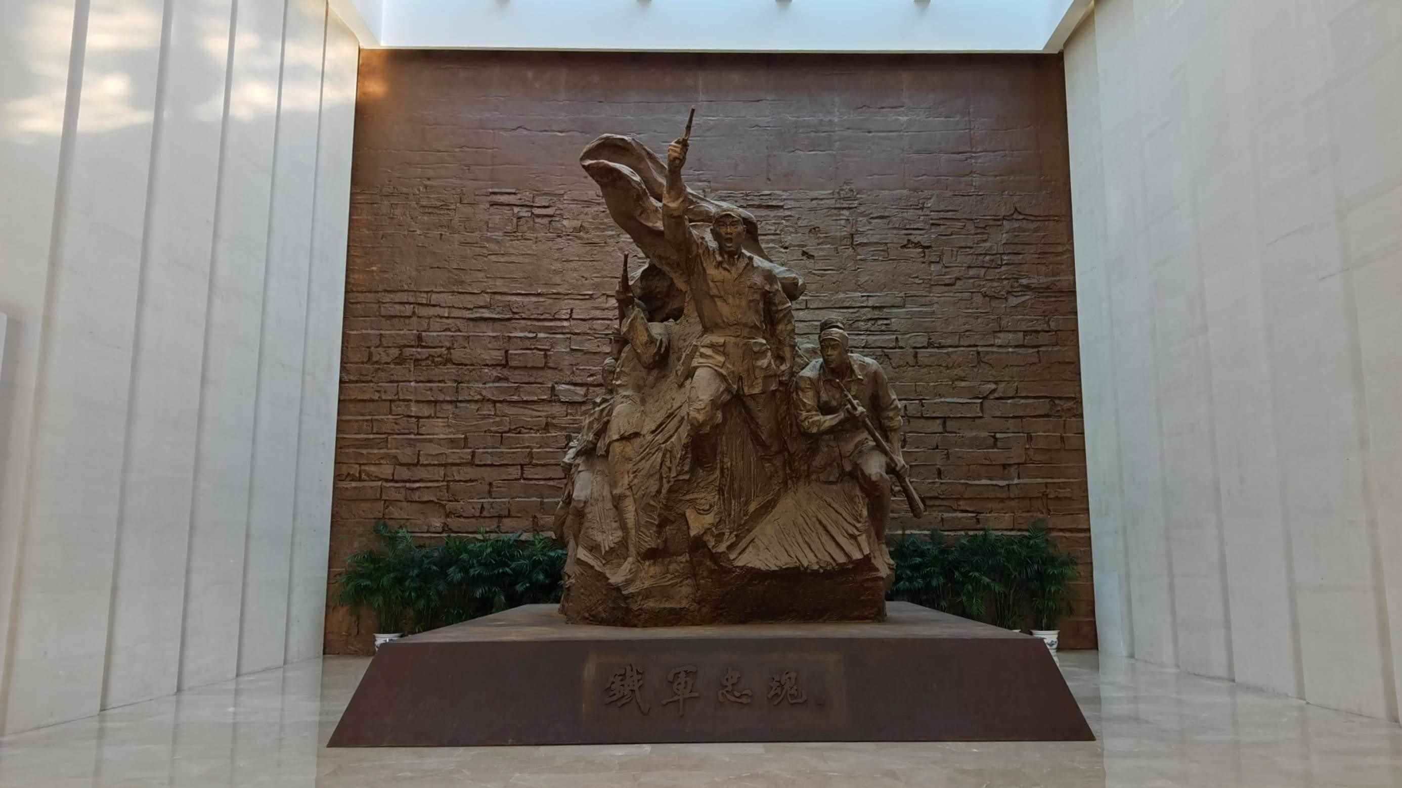 △新四軍紀(jì)念館里的雕塑“鐵軍忠魂”。(總臺(tái)央視記者郭鴻拍攝)