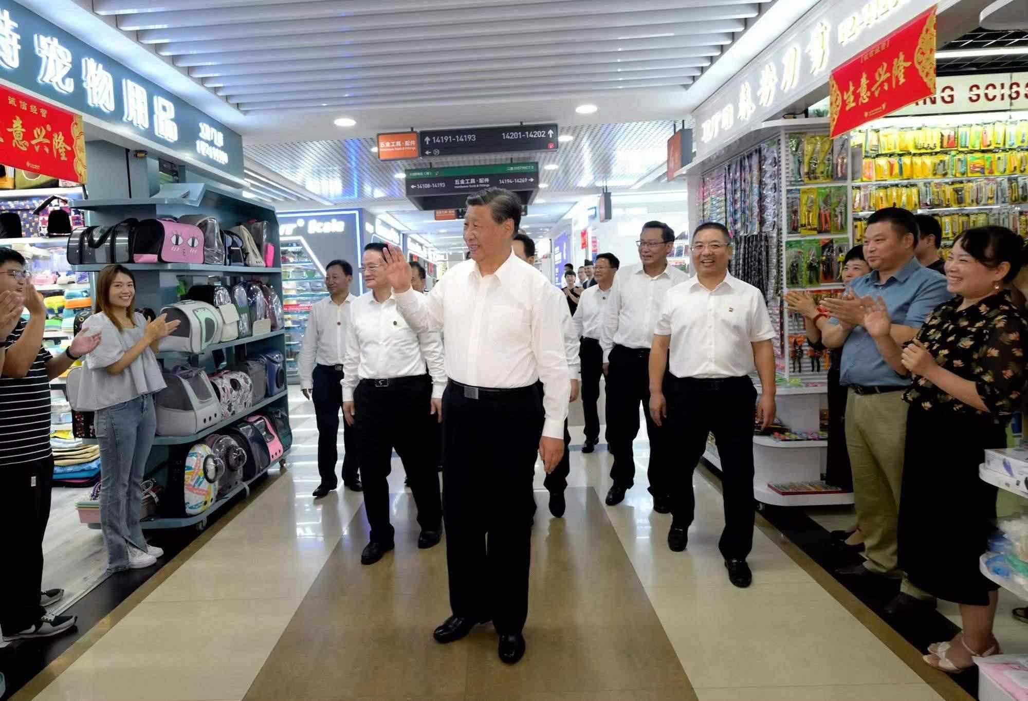 △2023年9月20日,習(xí)近平總書記在浙江義烏國際商貿(mào)城考察時(shí),同商戶親切交流。