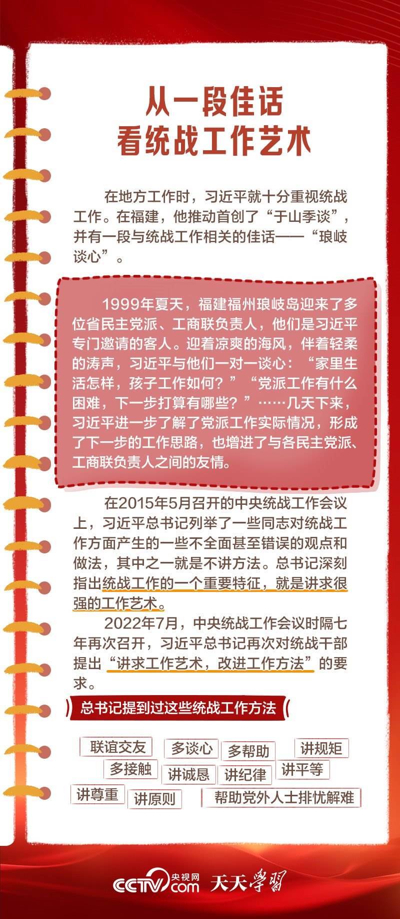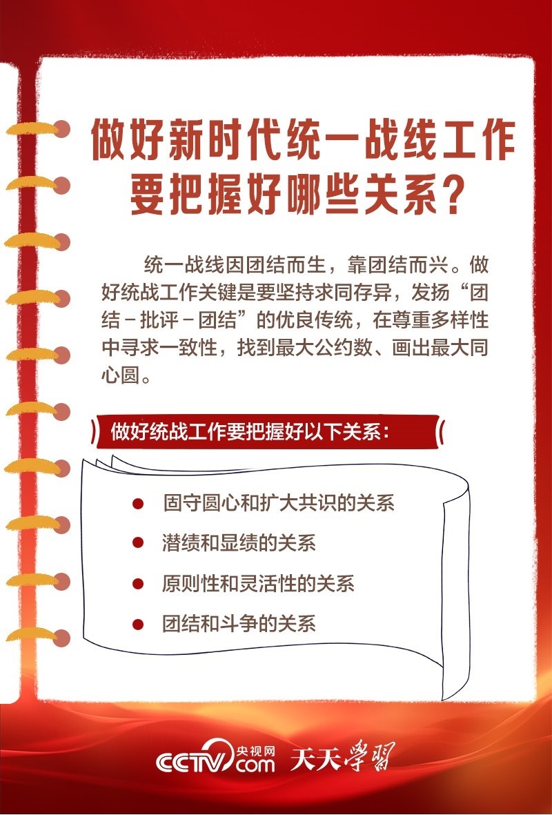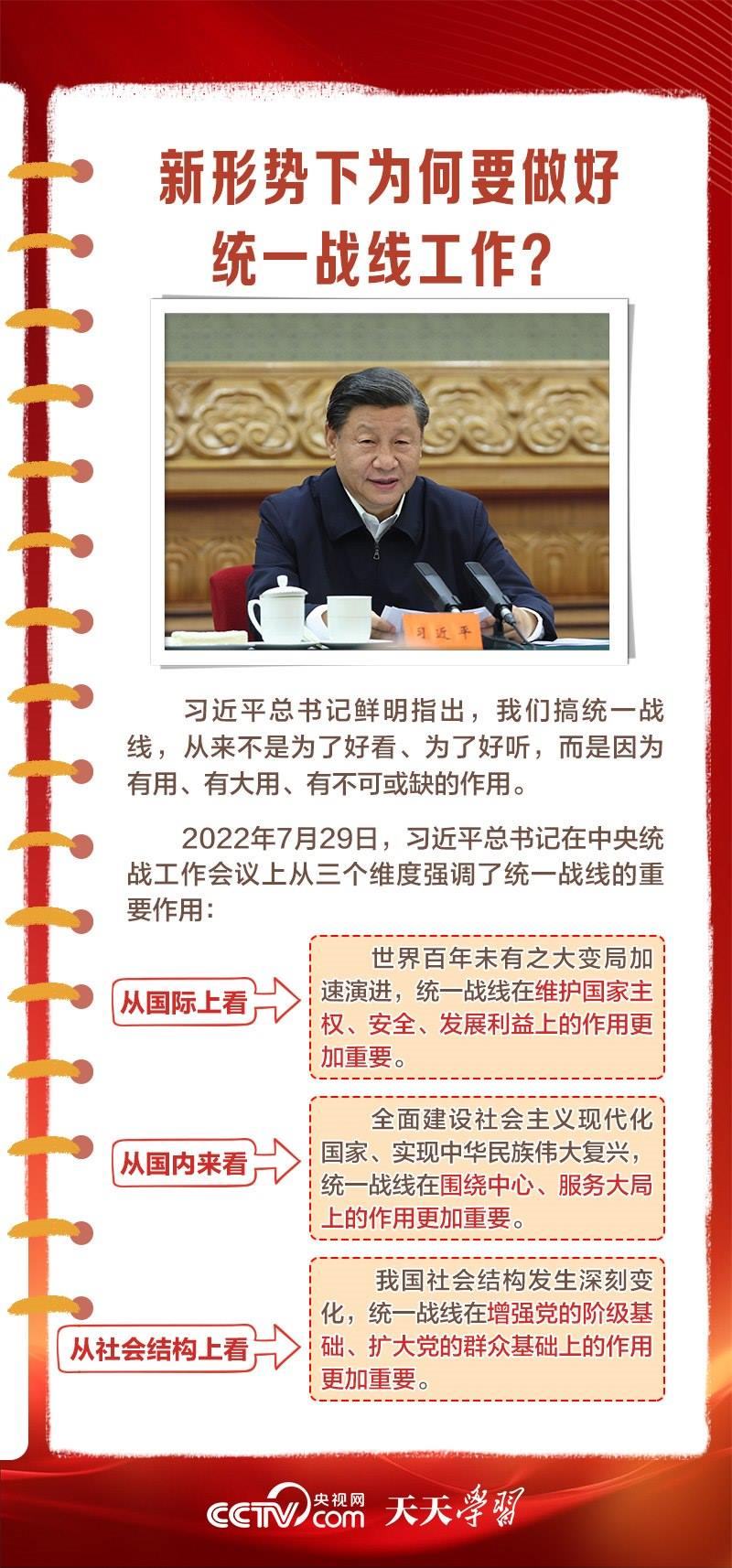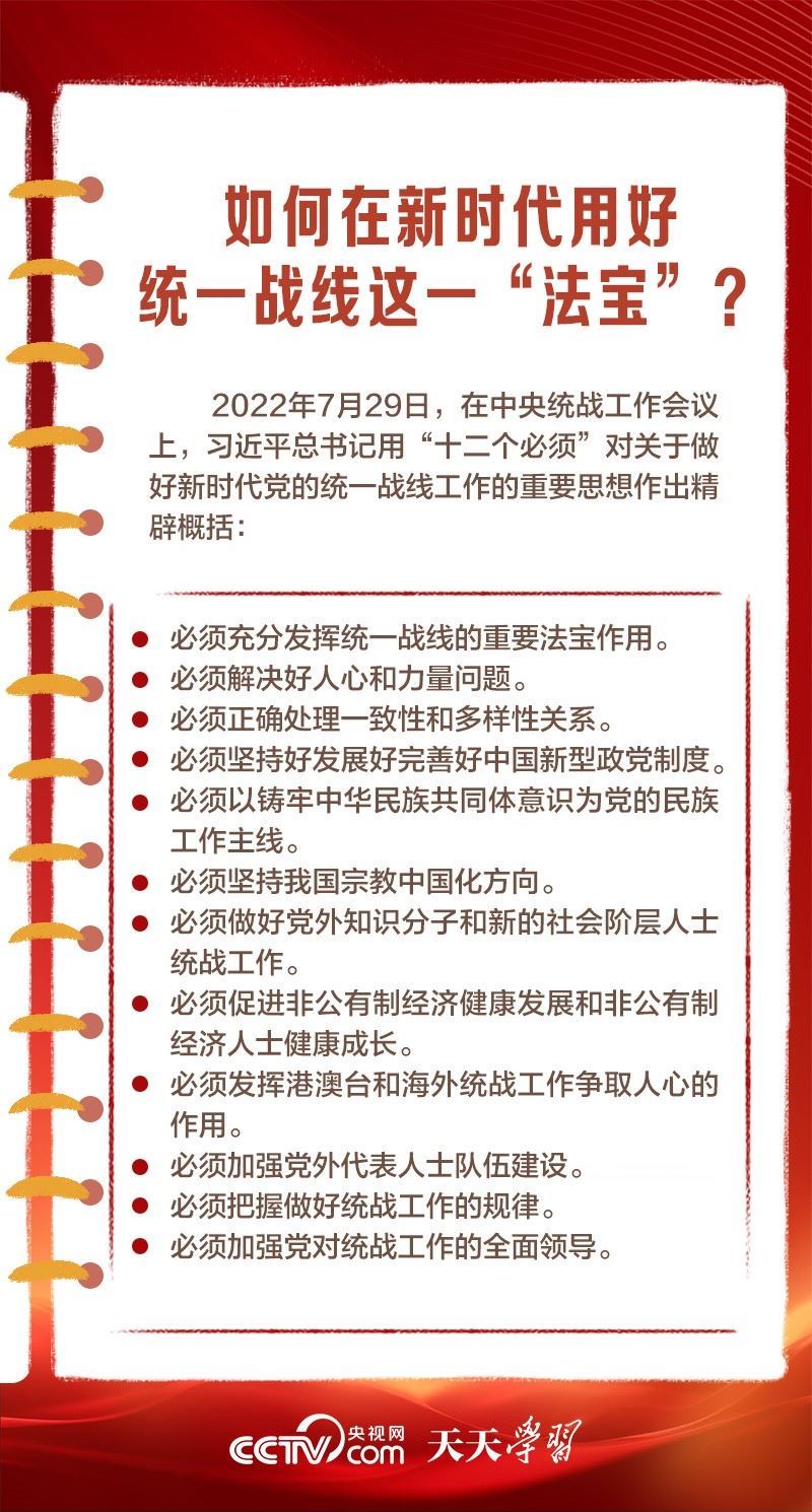 在百余年的奮斗歷程中,我們黨始終把統(tǒng)一戰(zhàn)線擺在重要位置,讓團結的旋律始終高昂,共同奮斗的力量始終激蕩。從“重要法寶”到“強大法寶”,體現(xiàn)出總書記對黨的統(tǒng)戰(zhàn)工作一以貫之的高度重視。