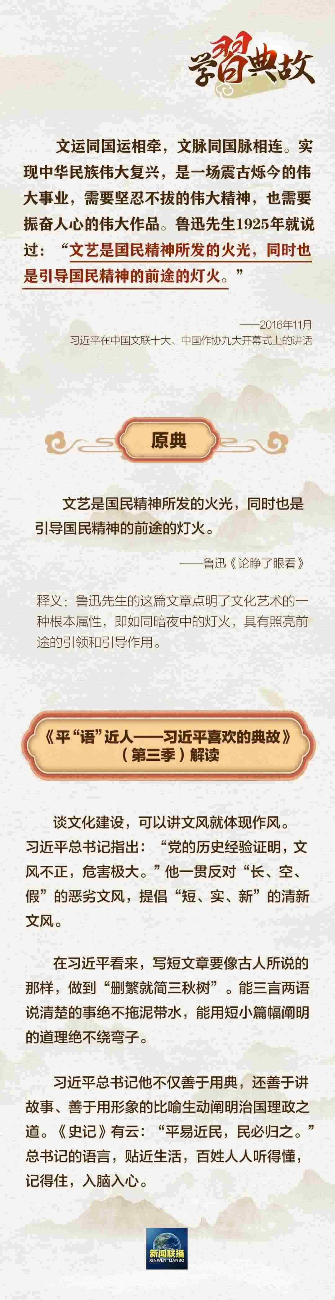 文運同國運相牽,文脈同國脈相連。文化自信是一個國家、一個民族發(fā)展中,最基本、最深沉、最持久的力量。黨的二十大報告中指出:“全面建設(shè)社會主義現(xiàn)代化國家,必須堅持中國特色社會主義文化發(fā)展道路。”圍繞“文化建設(shè)”這一主題,總書記曾講到哪些典故?一起學(xué)習(xí)↓↓↓