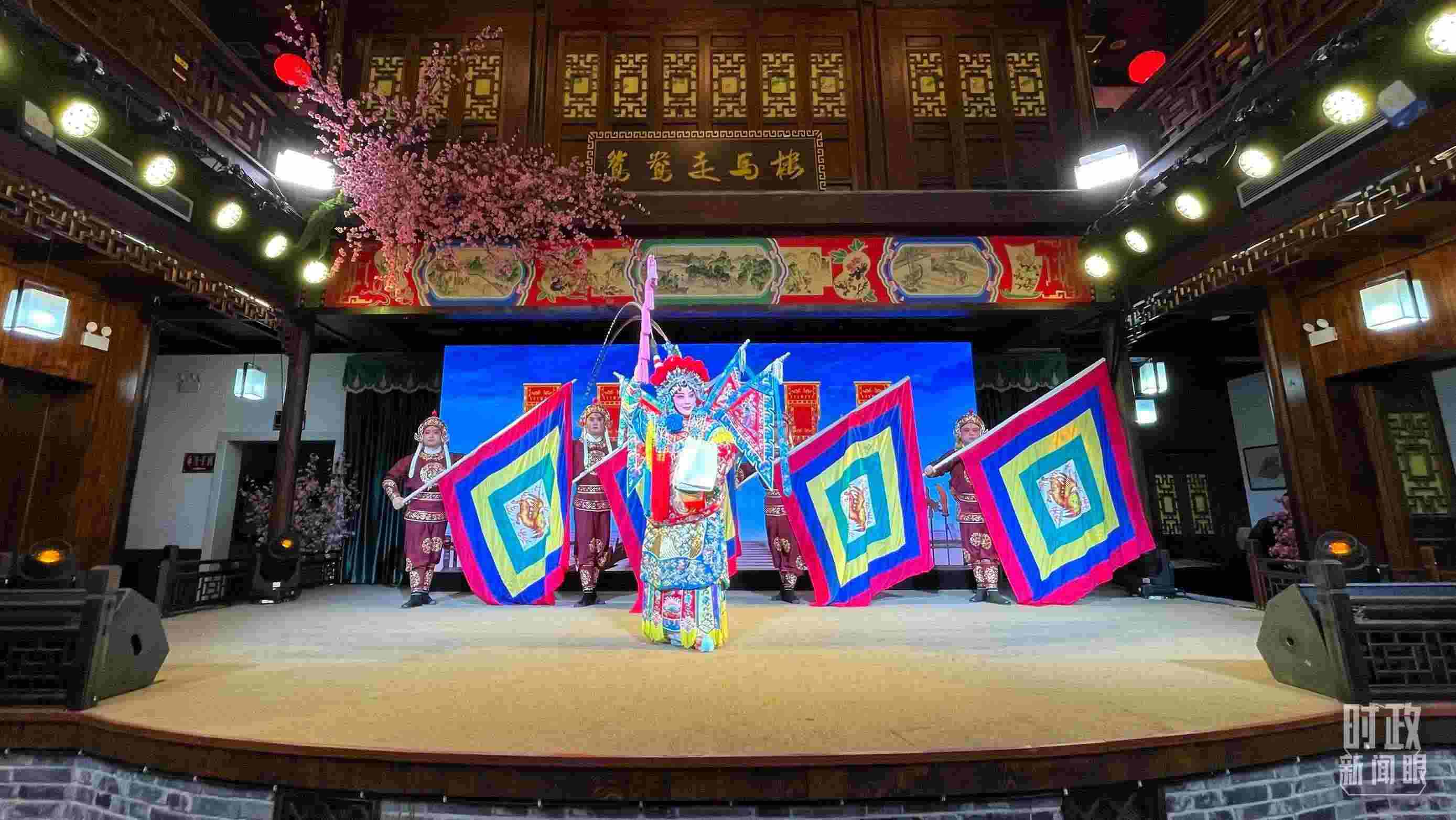 △常德河街,鴛鴦走馬樓上演常德高腔《穆桂英掛帥》和澧水船工號子。(總臺央視記者許永松、國廣記者李晉拍攝)