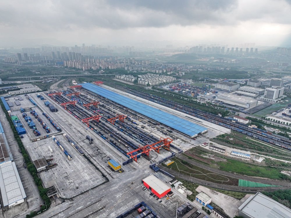 自重慶國際物流樞紐園區(qū)向北,一列列滿載貨物的中歐班列經(jīng)新疆霍爾果斯口岸出境,聯(lián)結起區(qū)域開放發(fā)展之路。