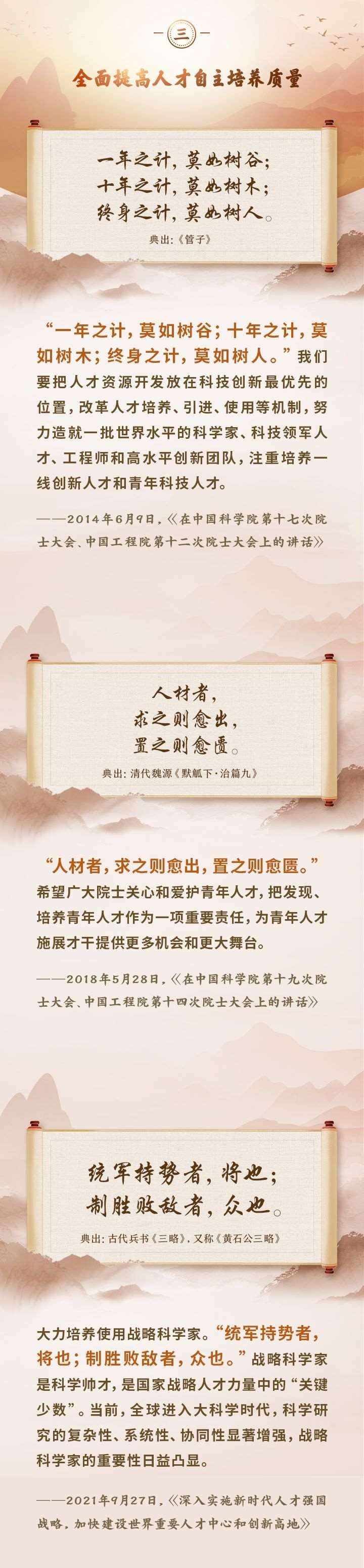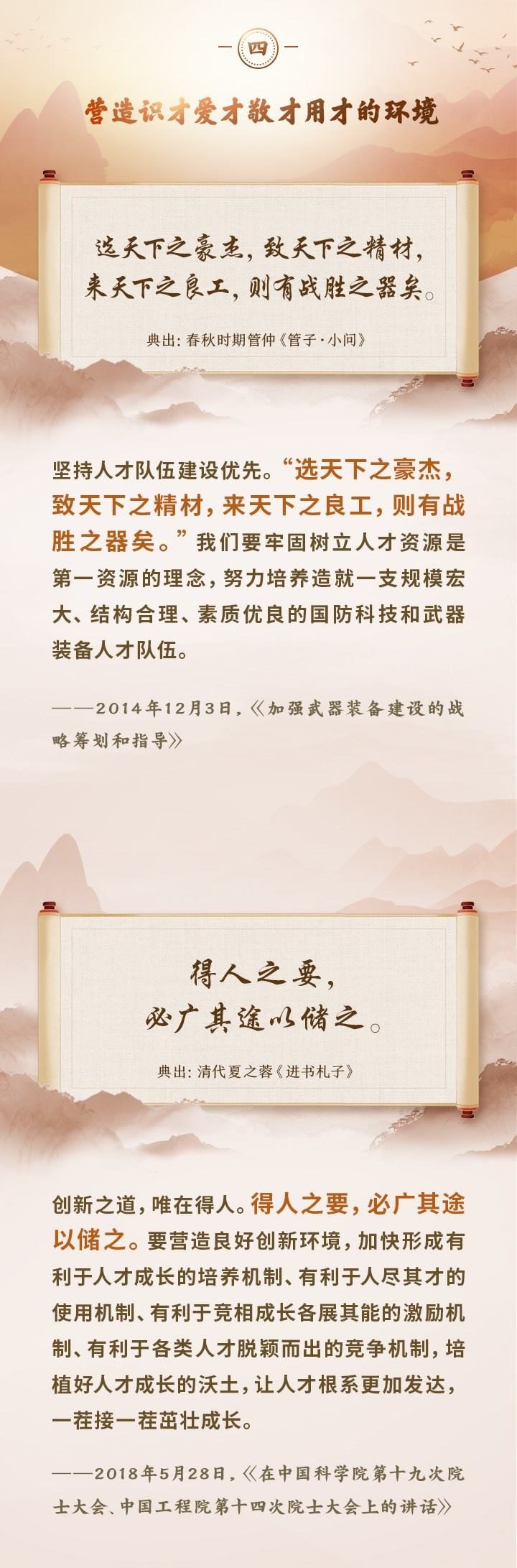 編者按:培養(yǎng)造就大批德才兼?zhèn)涞母咚刭|(zhì)人才,是國家和民族長(zhǎng)遠(yuǎn)發(fā)展大計(jì)。黨的十八大以來,習(xí)近平總書記圍繞人才工作發(fā)表一系列重要論述,立意高遠(yuǎn),內(nèi)涵豐富,思想深刻,深刻回答了為什么建設(shè)人才強(qiáng)國、什么是人才強(qiáng)國、怎樣建設(shè)人才強(qiáng)國的重大理論和實(shí)踐問題。在這些重要論述中,總書記精妙運(yùn)用古代典籍、經(jīng)典名句,以古喻今、啟迪思想、激蕩精神,讓我們一起來學(xué)習(xí)!