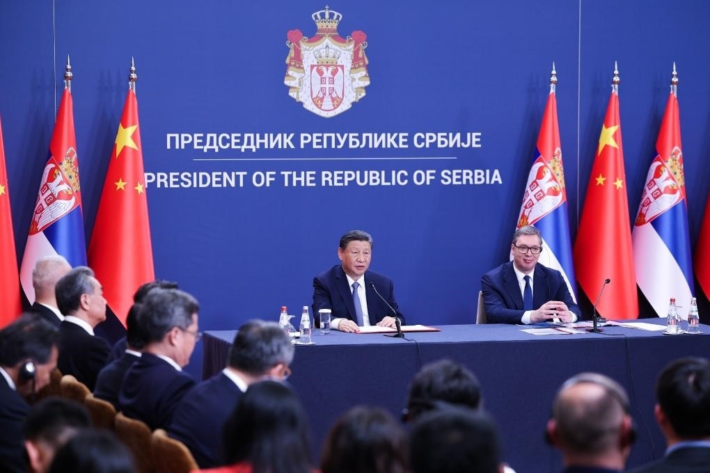 歡迎儀式后,國(guó)家主席習(xí)近平在貝爾格萊德塞爾維亞大廈同塞爾維亞總統(tǒng)武契奇舉行會(huì)談。