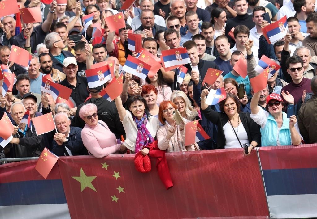 大廈廣場(chǎng)上,一萬(wàn)五千名塞爾維亞民眾揮舞中塞兩國(guó)國(guó)旗,對(duì)習(xí)近平表示最熱烈的歡迎。