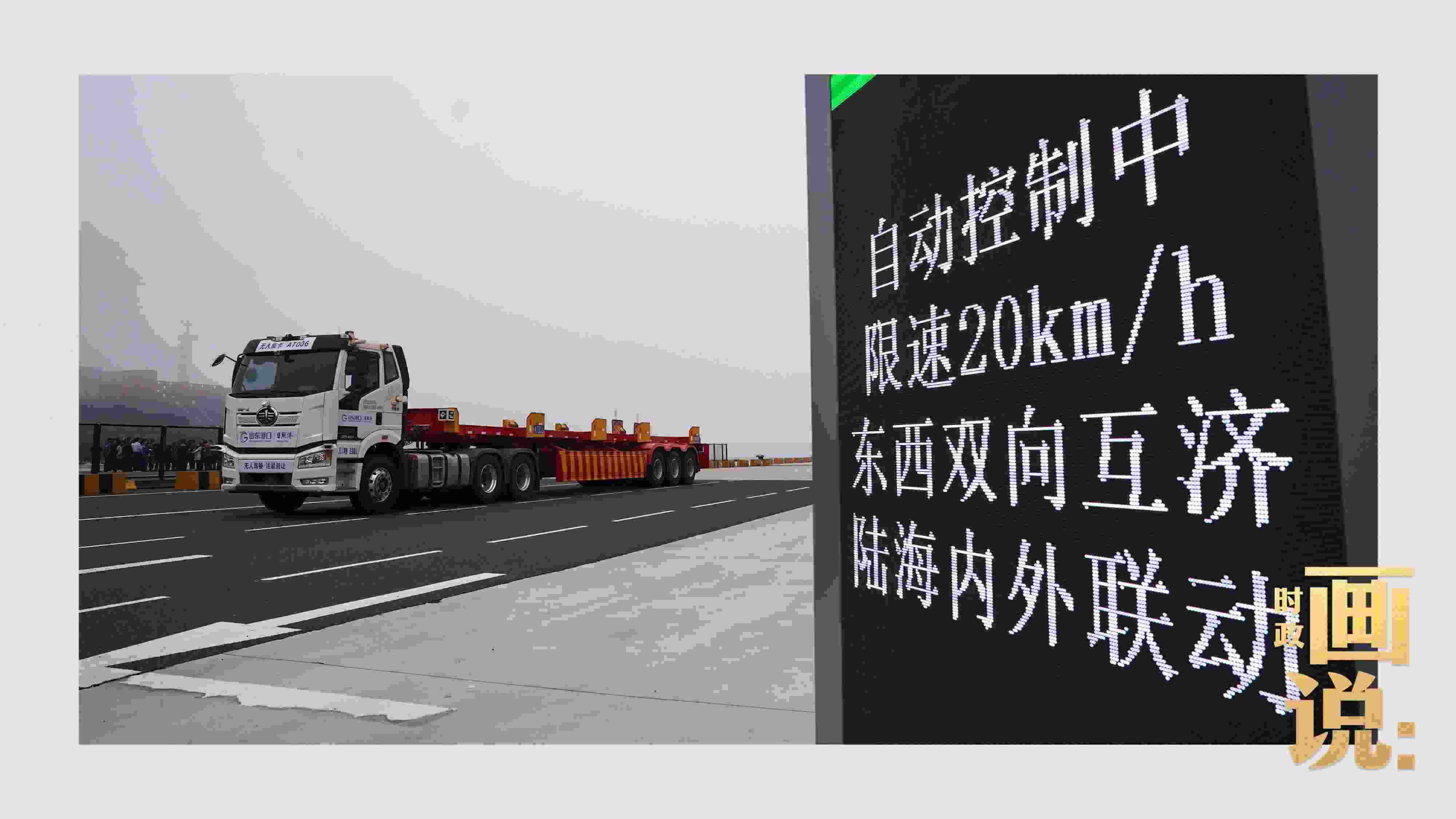 △山東港口集團日照港順岸開放式全自動化集裝箱碼頭,無人集卡車在運送集裝箱。