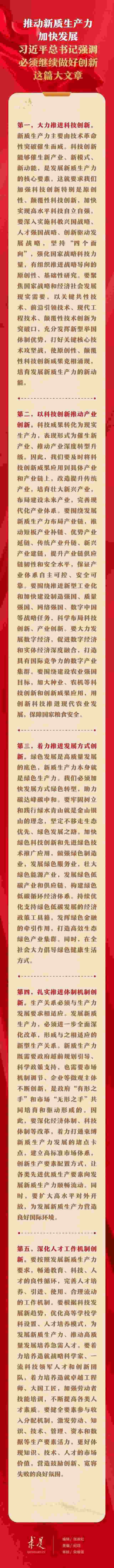 6月1日出版的第11期《求是》雜志刊發(fā)習(xí)近平總書記重要文章《發(fā)展新質(zhì)生產(chǎn)力是推動高質(zhì)量發(fā)展的內(nèi)在要求和重要著力點》。在這篇重要文章中,習(xí)近平總書記從科技創(chuàng)新、產(chǎn)業(yè)創(chuàng)新、發(fā)展方式創(chuàng)新、體制機制創(chuàng)新、人才工作機制創(chuàng)新等五個方面,對推動新質(zhì)生產(chǎn)力加快發(fā)展提出明確要求。