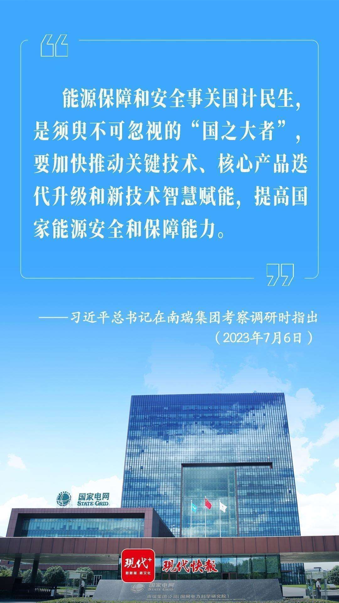 2023年7月6日,習(xí)近平總書記在江蘇南京考察南瑞集團(tuán)時指出,能源保障和安全事關(guān)國計(jì)民生,是須臾不可忽視的“國之大者”。要加快推動關(guān)鍵技術(shù)、核心產(chǎn)品迭代升級和新技術(shù)智慧賦能,提高國家能源安全和保障能力。
