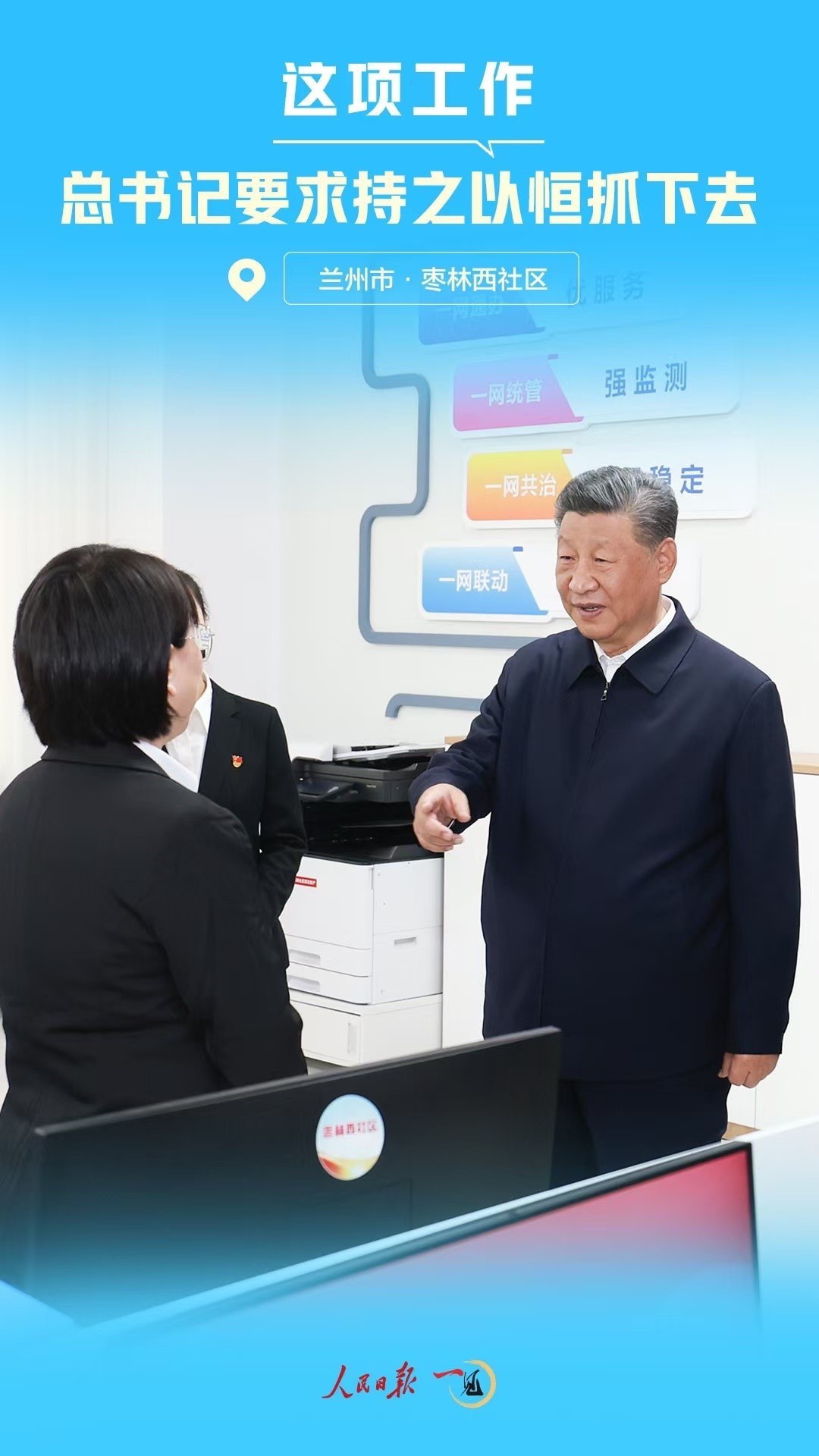 9月11日下午,習(xí)近平總書記來到甘肅省蘭州市考察。在安寧區(qū)棗林西社區(qū)黨群服務(wù)中心考察時,總書記細(xì)致詢問了落實為基層減負(fù)等情況。
