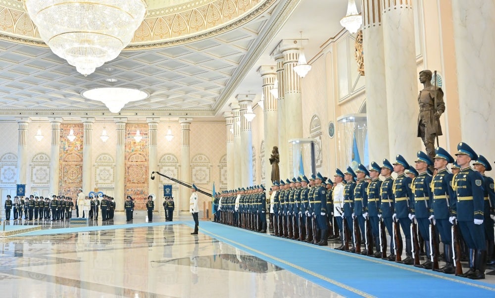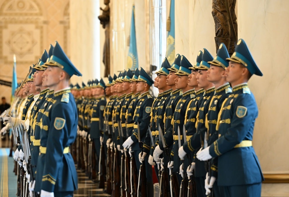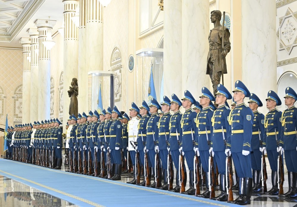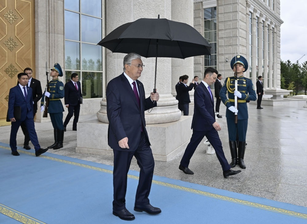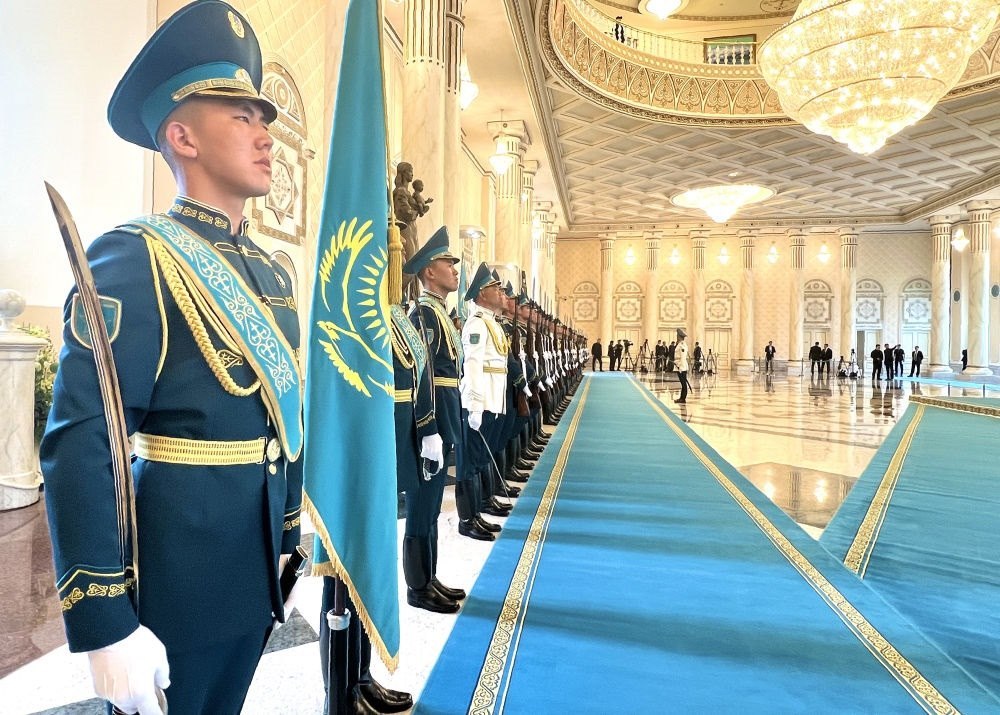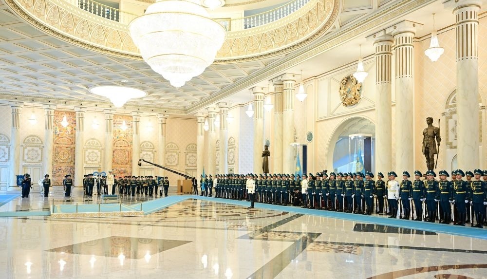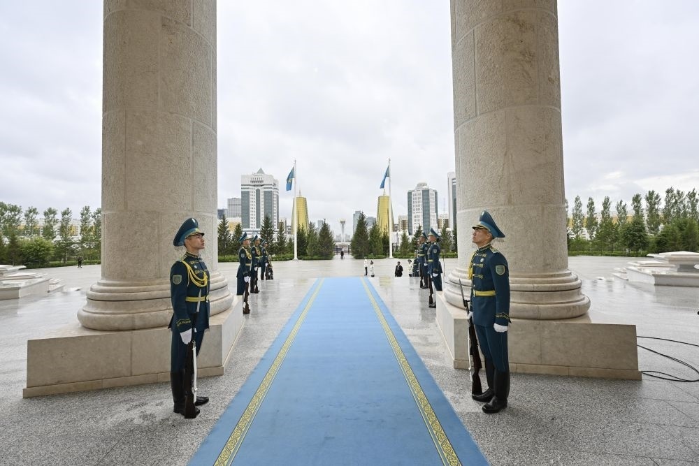 當(dāng)?shù)貢r間3日,國家主席習(xí)近平在阿斯塔納出席哈薩克斯坦總統(tǒng)托卡耶夫舉行的歡迎儀式。