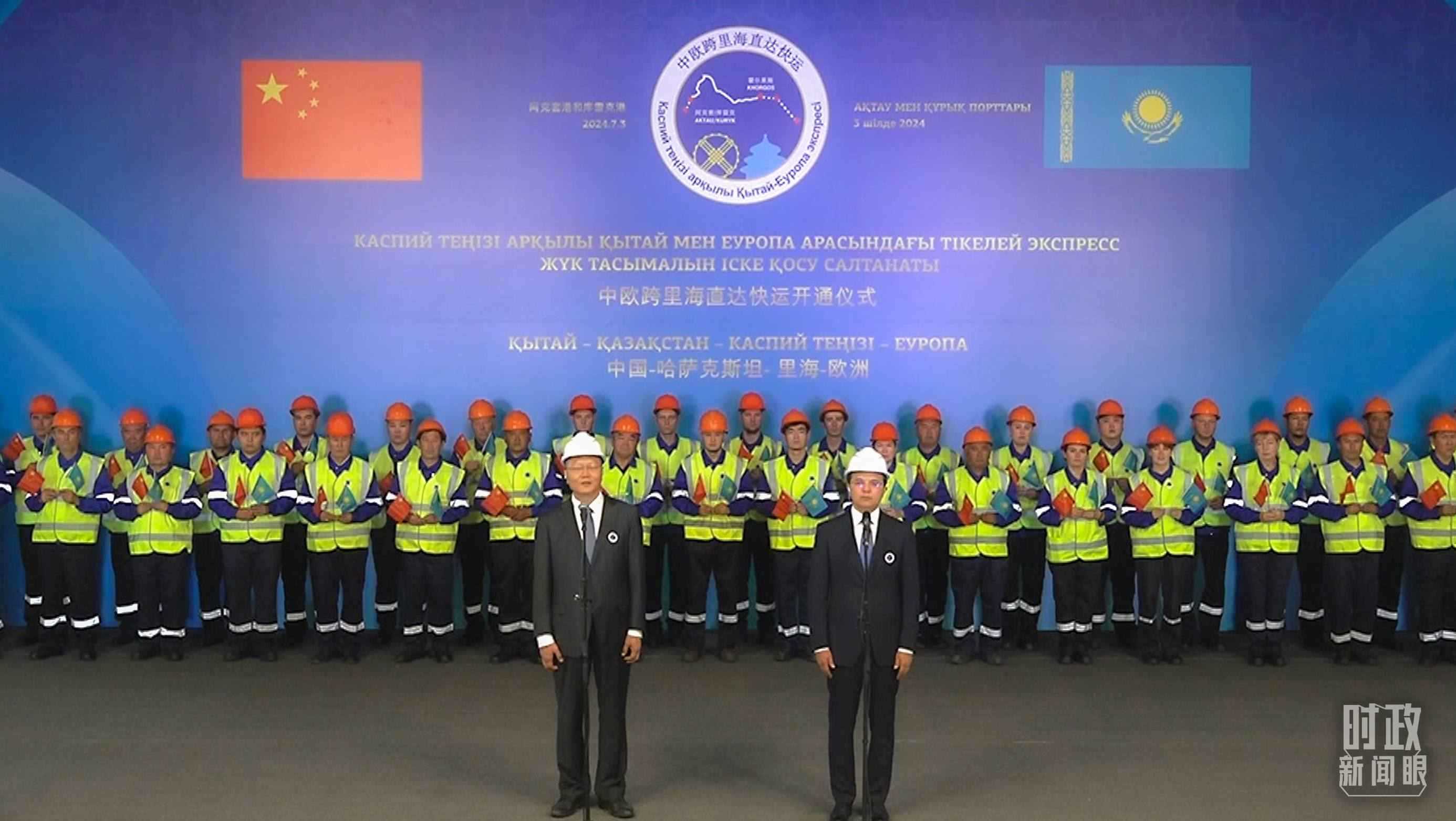 一場是兩國元首以視頻方式出席中歐跨里海直達快運開通儀式。