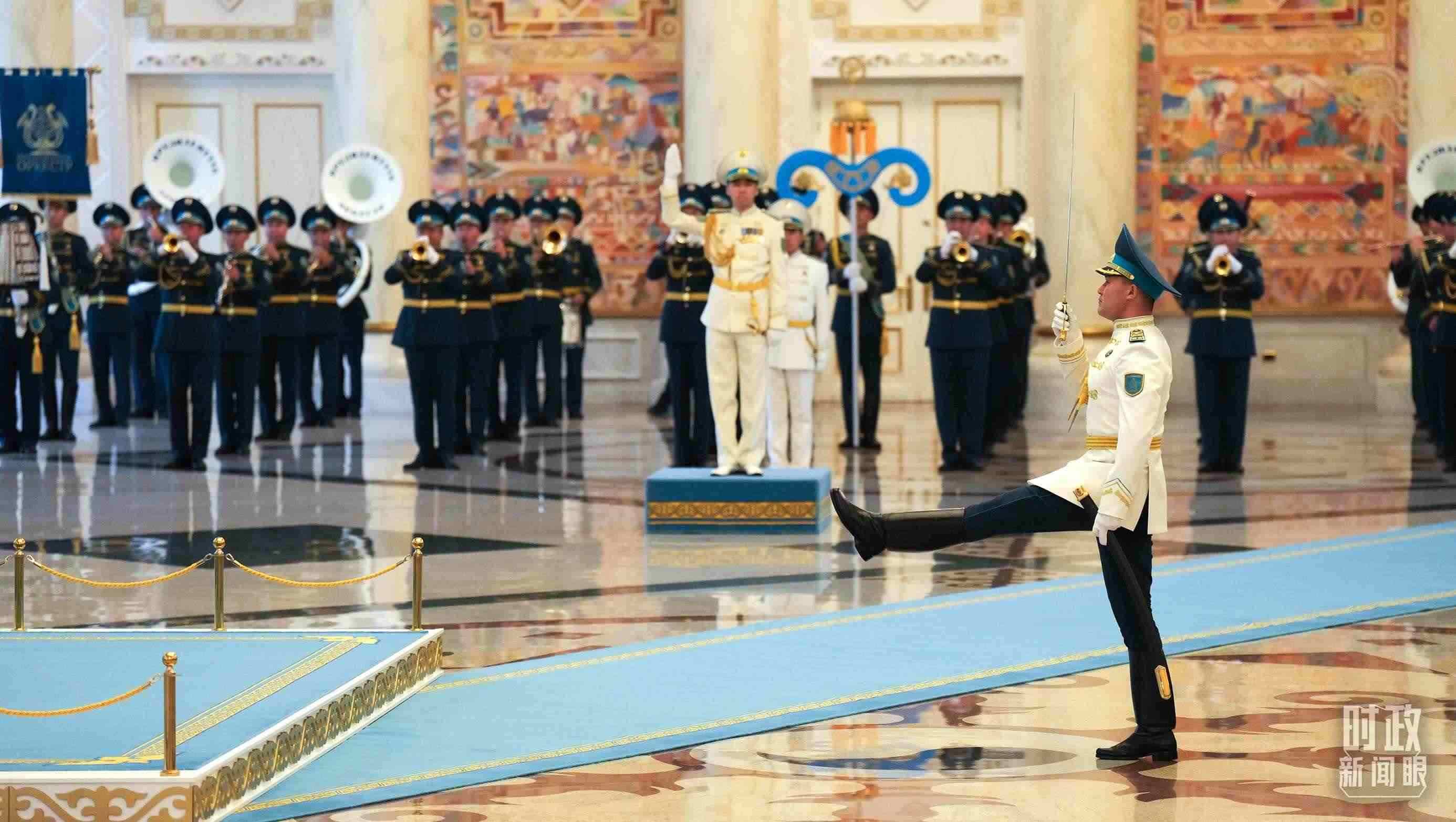 △哈薩克斯坦總統(tǒng)府禮兵。(總臺國廣記者李晉拍攝)