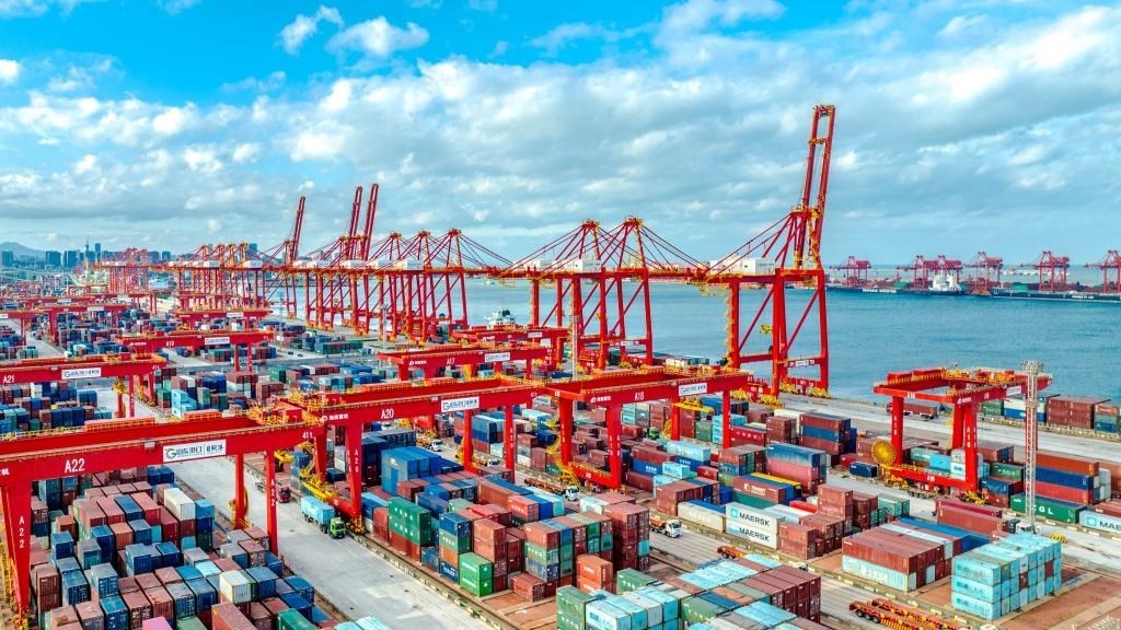 這是山東港口日照港的集裝箱碼頭(無人機(jī)照片)。
