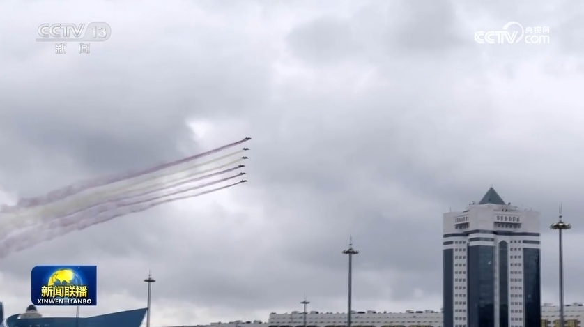 當(dāng)?shù)貢r(shí)間7月2日,習(xí)近平主席飛抵阿斯塔納,開(kāi)啟中亞之行。哈薩克斯坦總統(tǒng)托卡耶夫在機(jī)場(chǎng)舉行盛大迎賓儀式。第二天上午,哈薩克斯坦首次在總統(tǒng)府歡迎儀式上安排戰(zhàn)機(jī)表演,以最高禮儀歡迎習(xí)主席到訪。