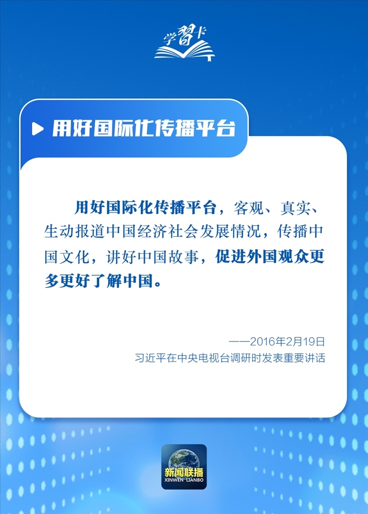 習(xí)近平總書記高度重視國際傳播能力建設(shè),指出當(dāng)前外宣工作處于歷史最好時期,同時也面臨最大壓力,強(qiáng)調(diào)要全面加強(qiáng)和改進(jìn)國際傳播工作,深化文明交流互鑒,形成同我國綜合國力和國際地位相匹配的國際話語權(quán),增強(qiáng)中華文明傳播力影響力。一起學(xué)習(xí)↓