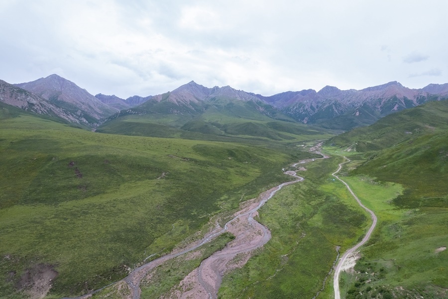 2024年7月10日在甘肅省張掖市肅南裕固族自治縣皇城鎮(zhèn)拍攝的祁連山景色(無人機(jī)照片)。新華社記者 郎兵兵 攝