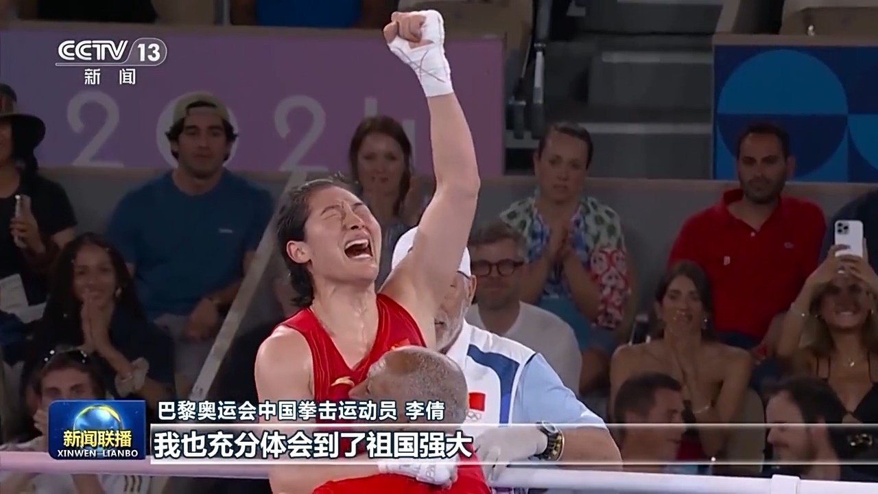 巴黎奧運會中國拳擊運動員 李倩:總書記說國運興則體育興,國家強則體育強。拳擊項目在本次奧運會上取得三金的成績,全都得益于國家的強大。我自己經歷了三屆奧運會,從里約的銅牌,到東京的銀牌,再到這次巴黎的金牌,一直以來都是國家和人民支撐著我。當國旗在巴黎升起、國歌奏響的那一刻,心里真是充滿自豪,我也充分體會到了祖國強大。