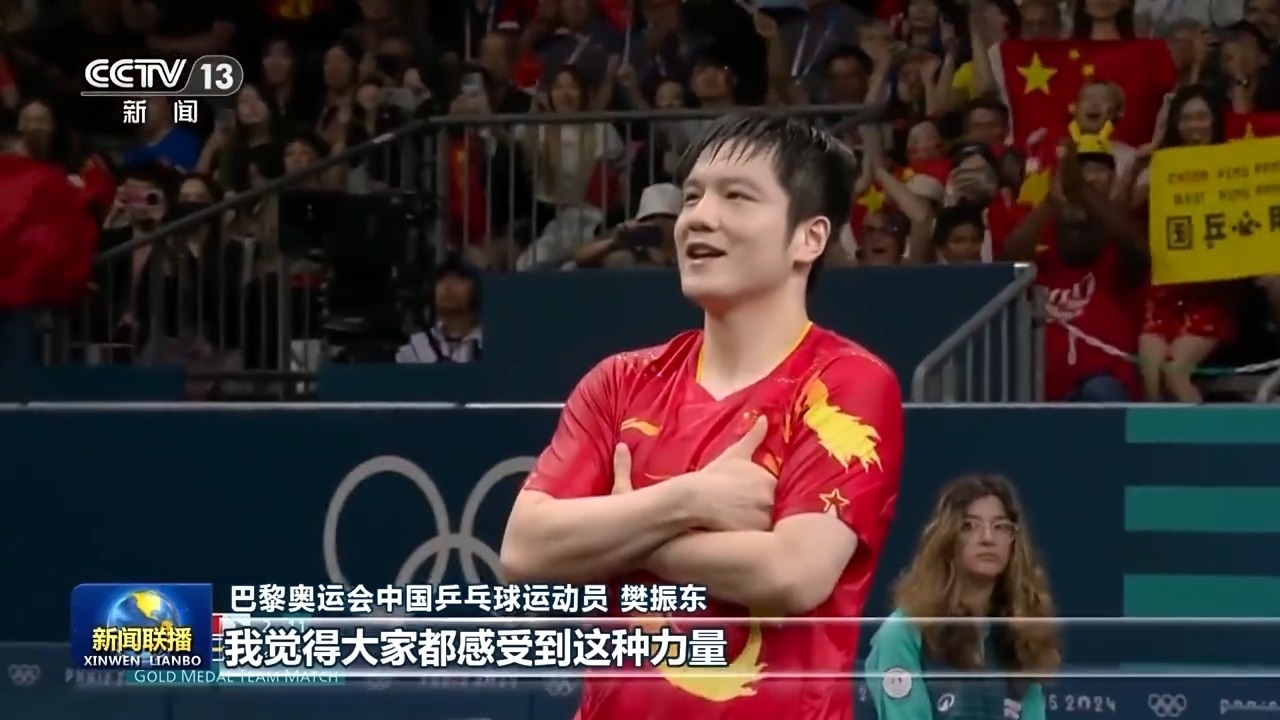 巴黎奧運會中國乒乓球運動員 樊振東:能夠受到總書記的接見,我覺得是非常至高無上的榮幸。里約奧運會跟東京奧運會結束以后,也都有幸參與總書記的接見,總書記每一次都非常親切。我覺得無時無刻不感受到總書記對體育、對我們中國代表團的這種重視跟關心,我覺得大家都感受到這種力量。