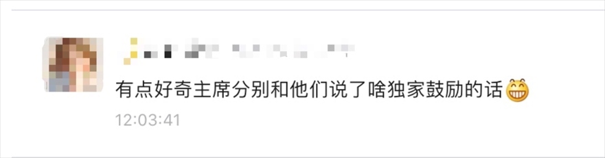 其間,總書記與不少運(yùn)動(dòng)員握手、交談。有網(wǎng)友好奇,總書記接見運(yùn)動(dòng)員時(shí)“都說了什么獨(dú)家鼓勵(lì)的話”。