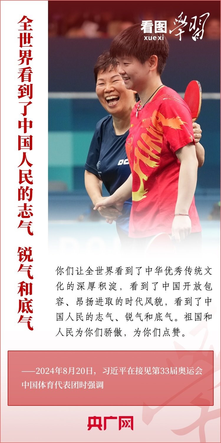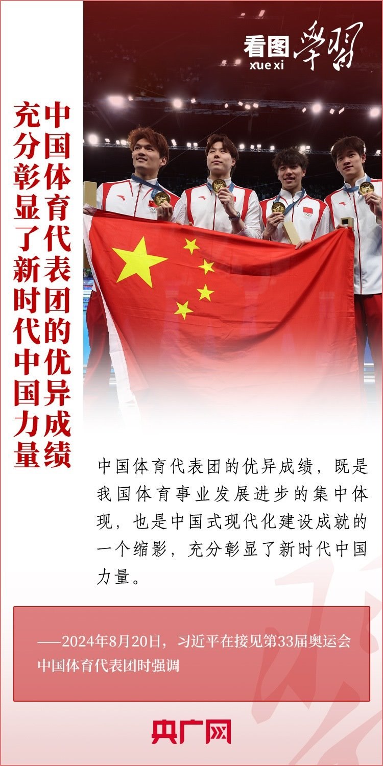 “祖國和人民為你們驕傲,為你們點贊?!?月20日,習近平總書記在人民大會堂接見第33屆奧運會中國體育代表團并發(fā)表重要講話。總書記高度肯定中國體育代表團取得的優(yōu)異成績,贊揚他們充分彰顯了新時代中國力量、生動詮釋了新時代中國精神、充分展現(xiàn)了新時代中國形象,勉勵大家戒驕戒躁、再接再厲,為建設(shè)體育強國再立新功。一起來學習!