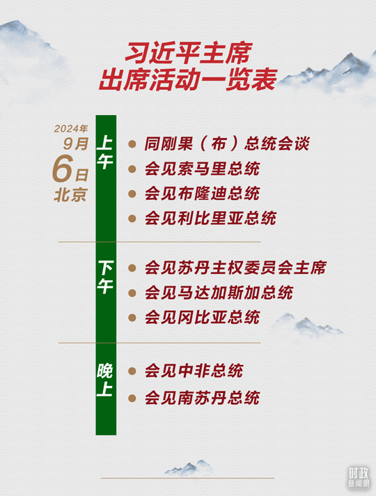 當天,習主席接連同9位非洲國家領導人會晤,發(fā)出積極落實峰會成果的鮮明信號。5天時間,42場會晤,“大國會客廳”見證中非友誼歷久彌新。