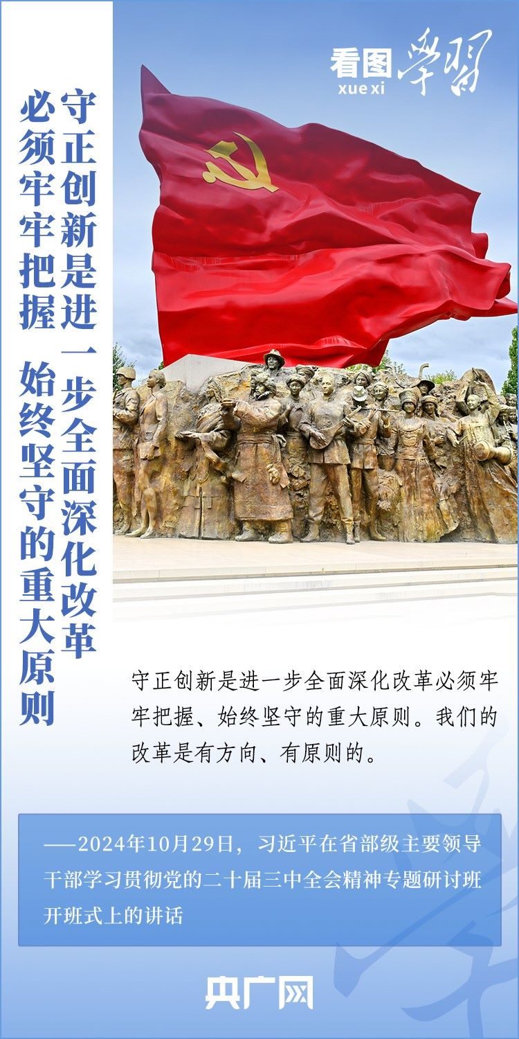 改革只有進行時,沒有完成時。10月29日,省部級主要領導干部學習貫徹黨的二十屆三中全會精神專題研討班在中央黨校(國家行政學院)開班。習近平總書記發(fā)表重要講話,就進一步全面深化改革的一系列重大問題進行深刻闡釋,強調(diào)要牢牢把握、始終堅守“守正創(chuàng)新”這一重大原則,把握好“四對關系”,奮力打開改革發(fā)展新天地。一起來學習!