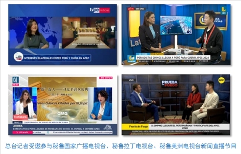 中央廣播電視總臺記者受邀參與秘魯國家廣播電視臺、秘魯拉丁電視臺和當?shù)厥找暵首罡叩拿佤斆乐揠娨暸_新聞直播節(jié)目,介紹《平“語”近人——習近平喜歡的典故》第三季(西班牙語版)內(nèi)容,帶領當?shù)厥鼙姼形蛄暯街飨玫渲刑N含的中國智慧。