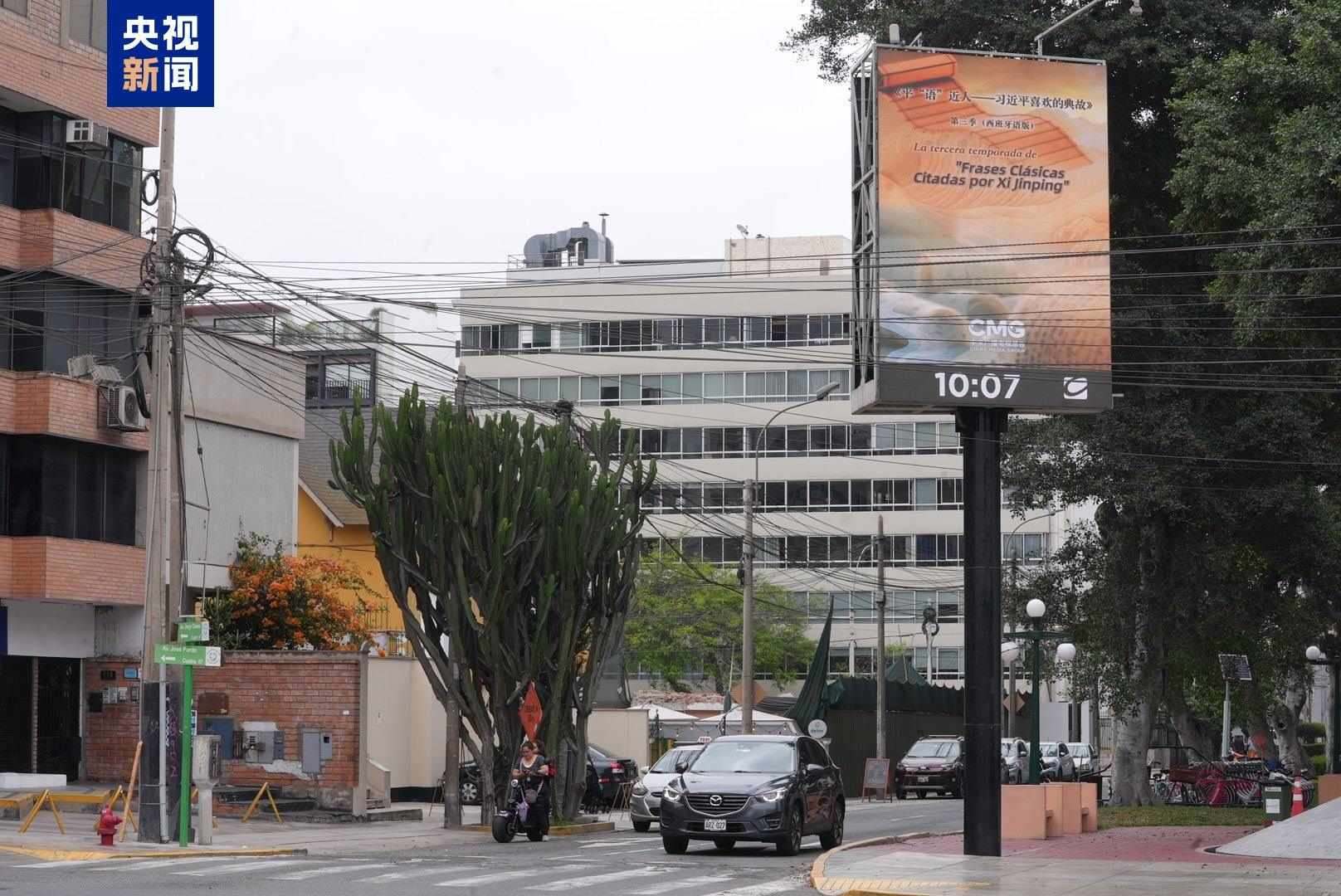 11月14日起,《平“語”近人——習近平喜歡的典故》第三季(西班牙語版)宣傳片在利馬地標建筑戶外大屏、利馬國際機場至市中心沿路戶外大屏滾動播放。秘魯各界人士對節(jié)目落地播出表示期待,認為這將為秘魯民眾了解中國領導人治國理政思想、領略中國式現(xiàn)代化的壯美宏闊打開思想之窗。