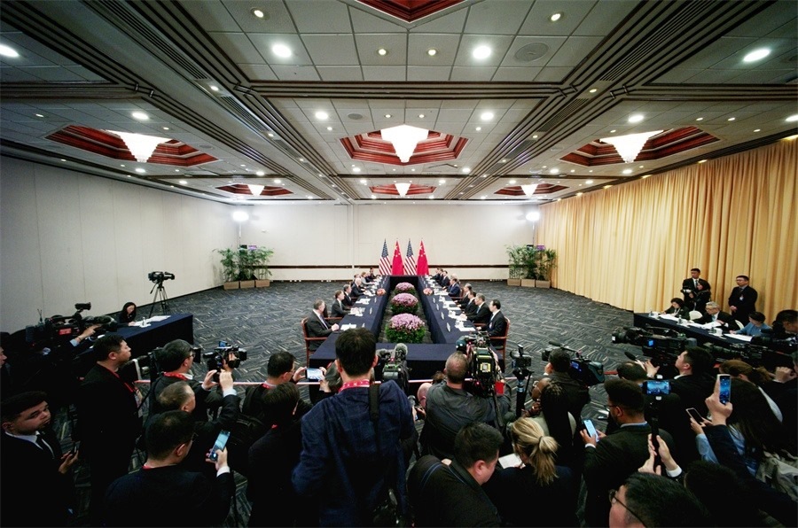 當(dāng)今世界動(dòng)蕩不安、沖突頻發(fā),新老問題交織共振,人類面臨前所未有的挑戰(zhàn)。大國競(jìng)爭(zhēng)不應(yīng)是時(shí)代底色,團(tuán)結(jié)協(xié)作才能共克時(shí)艱。新一輪科技革命和產(chǎn)業(yè)變革方興未艾,“脫鉤斷鏈”不是解決之道,互利合作才能共同發(fā)展?!靶≡焊邏Α辈皇谴髧鳛?,開放共享才能造福人類。中美作為世界上兩個(gè)大國,應(yīng)該計(jì)天下利,多為當(dāng)前動(dòng)蕩不安的世界注入確定性、提供正能量。